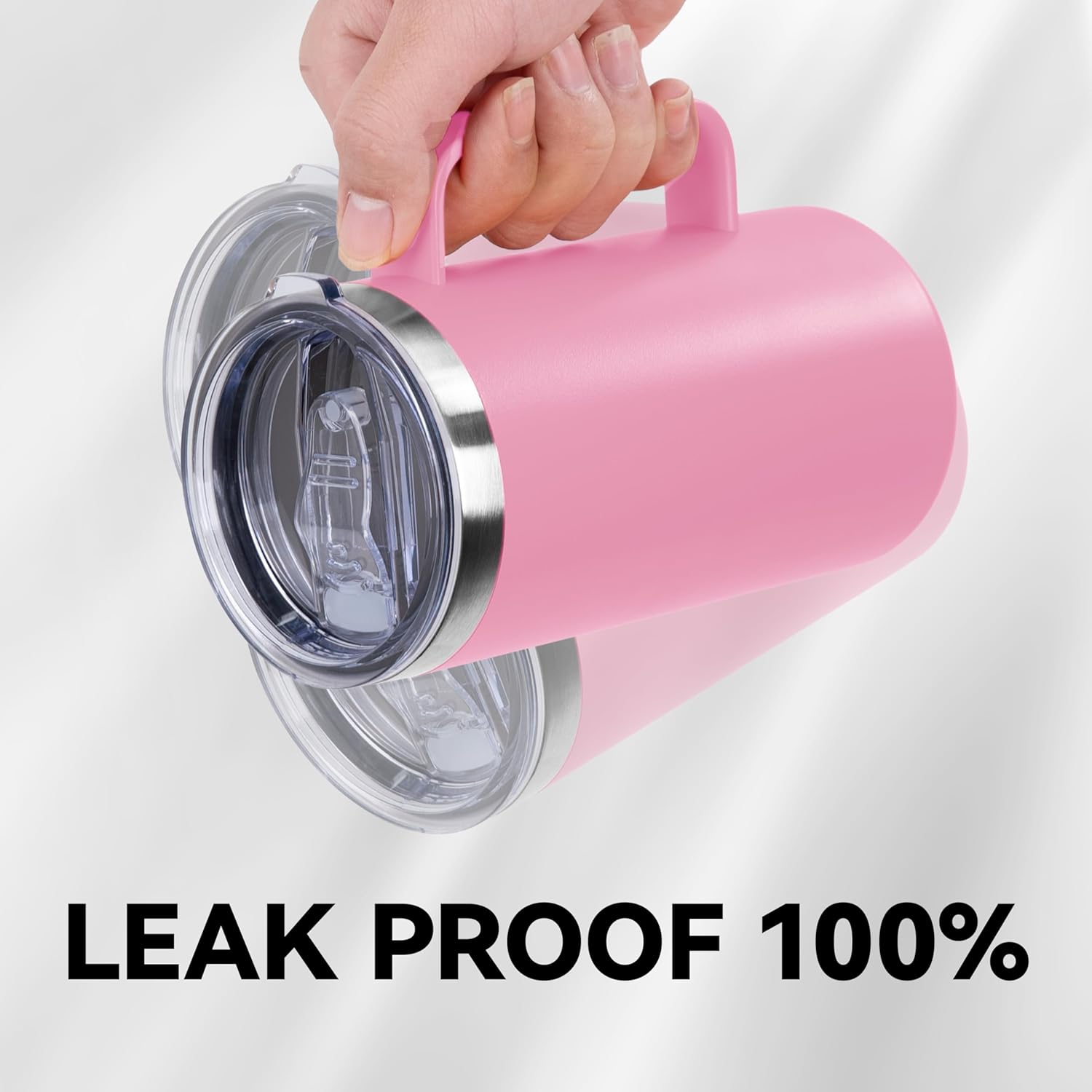 DOMICARE 24oz Mug with Handle and Lid, Stainless Steel Coffee Mug, Travel Mug with Handle, Double Wall Vacuum Coffee Tumbler, Reusable Insulated Cup, Pink, Pack 4