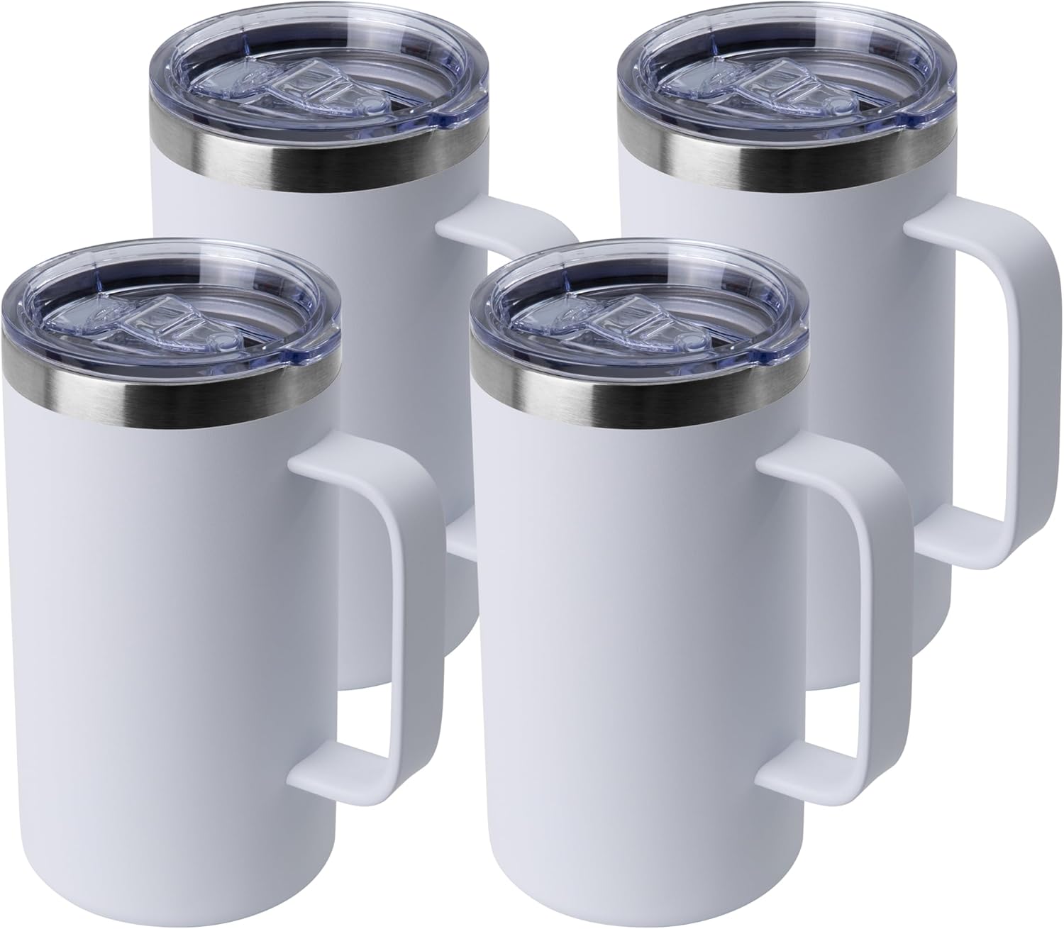 DOMICARE 24oz Mug with Handle and Lid, Stainless Steel Coffee Mug, Travel Mug with Handle, Double Wall Vacuum Coffee Tumbler, Reusable Insulated Cup, White, Pack 4