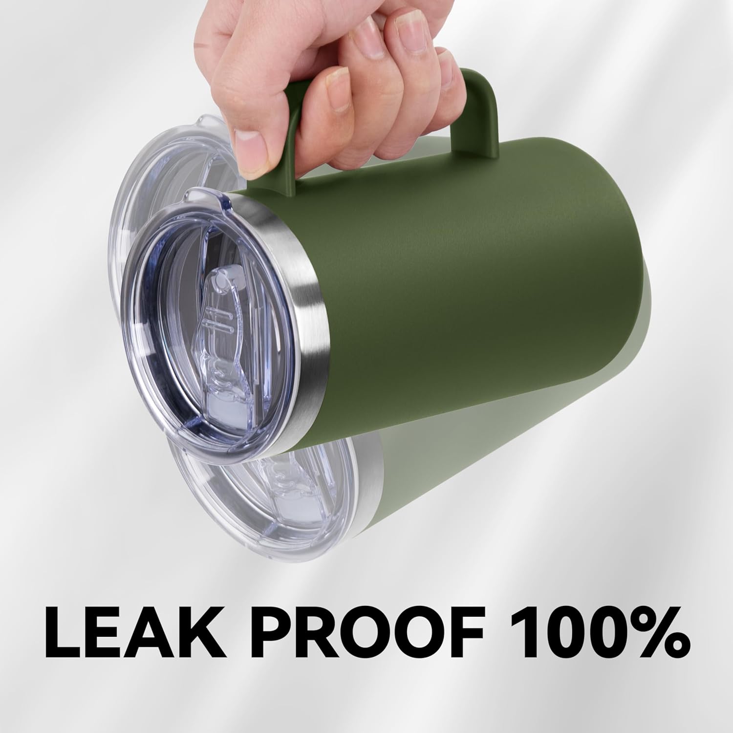 DOMICARE 24oz Mug with Handle and Lid, Stainless Steel Coffee Mug, Travel Mug with Handle, Double Wall Vacuum Coffee Tumbler, Reusable Insulated Cup, Army Green, Pack 4
