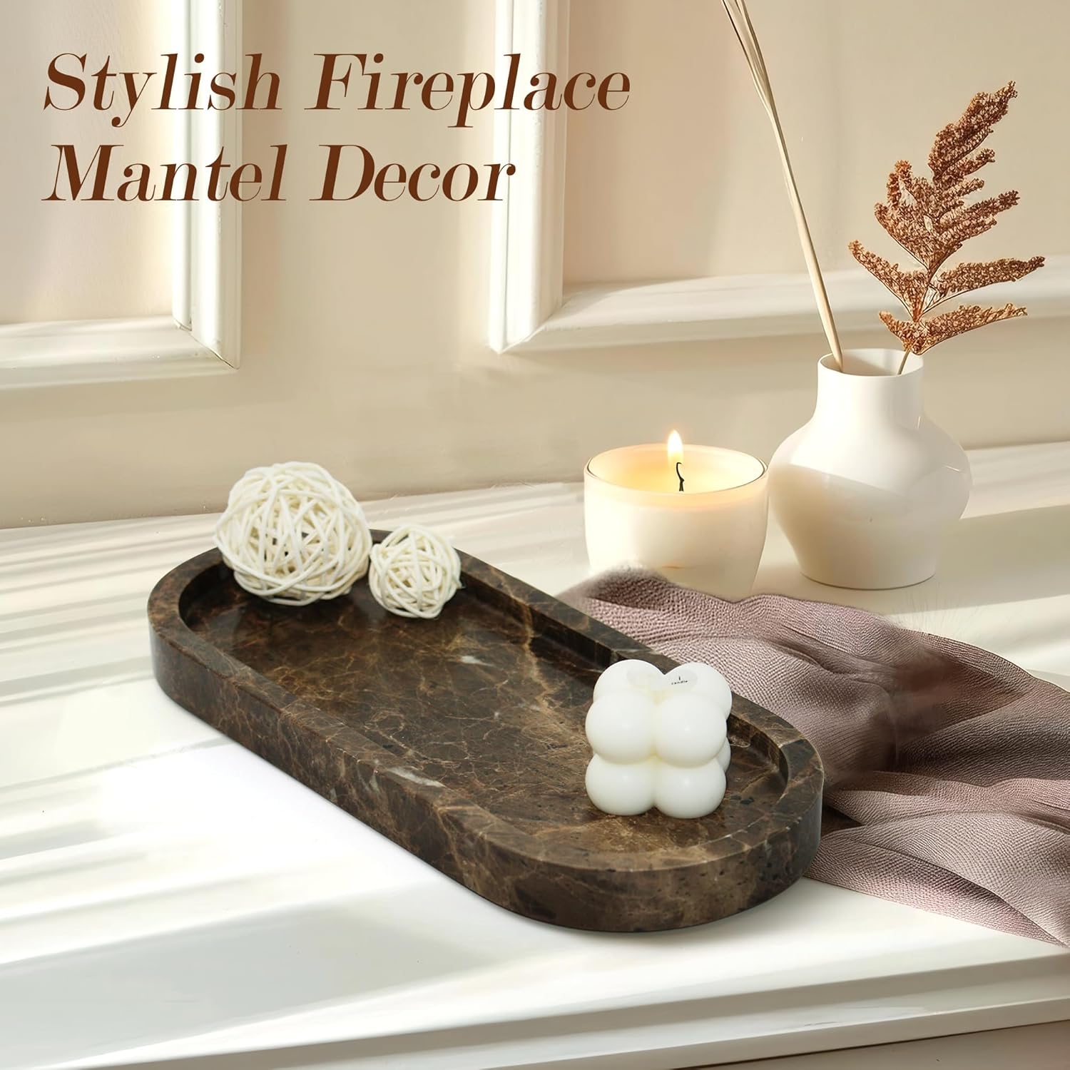- Luxury Natural Marble Craftsmanship: Transform your space with the timeless elegance of natural marble. This luxury dark brown marble tray is handcrafted from 100% premium natural stone, each tray is meticulously cut and polished by skilled artisans, making each tray unique with its own beautiful veining patterns. The high-quality marble surface is durable, smooth, and perfect for any countertop or vanity.