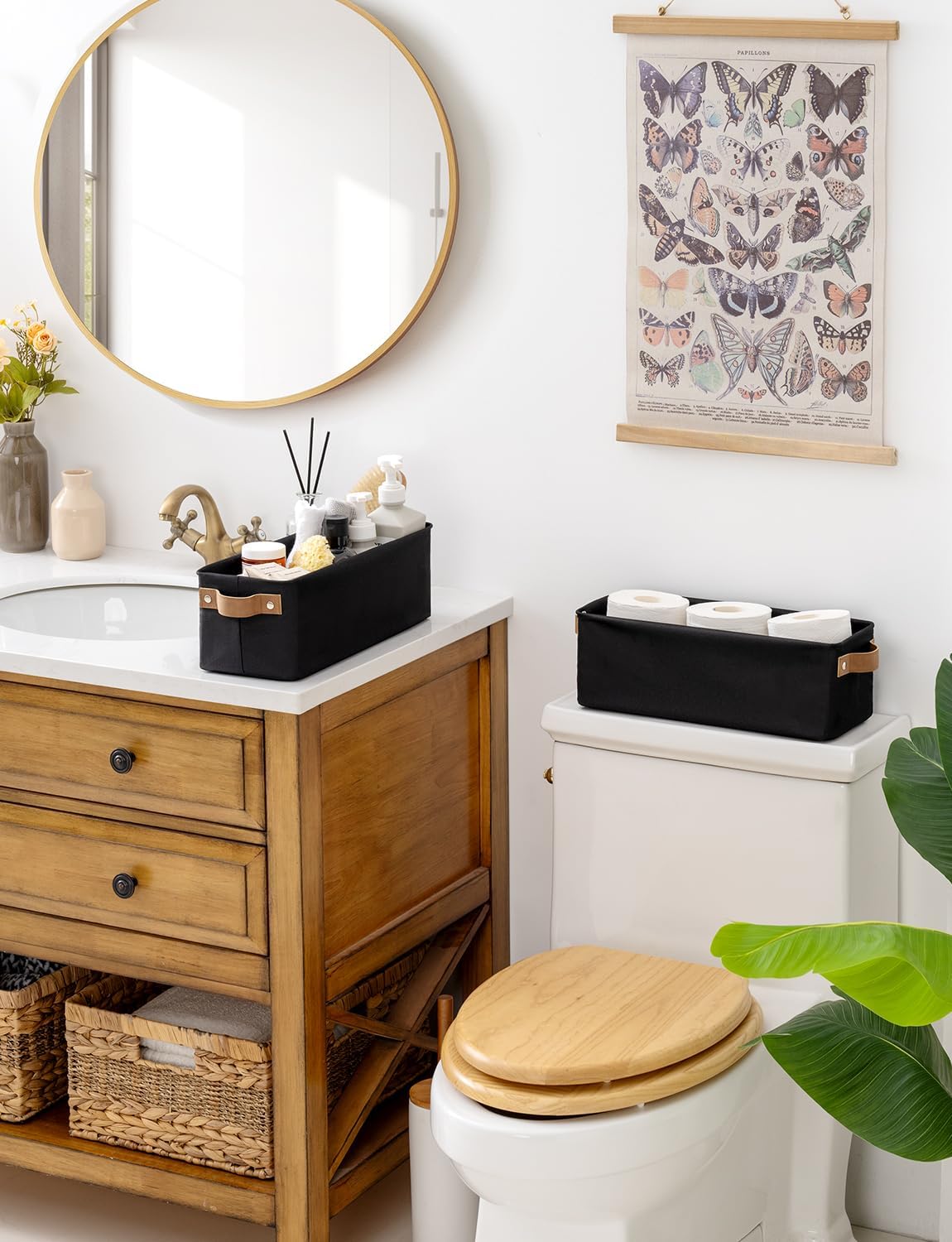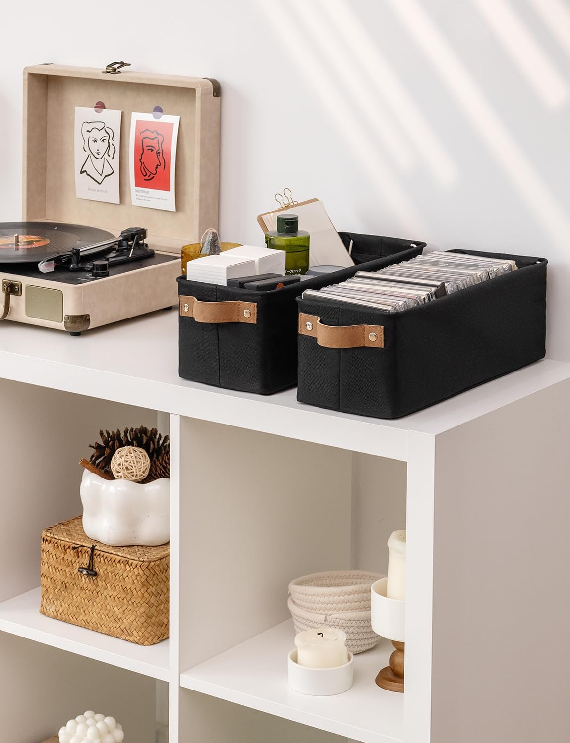 - Premium Materials: The storage basket is crafted from durable, thick fabric and features wide PU leather handles with rivet reinforcement, ensuring both strength and ease of movement to any desired location.