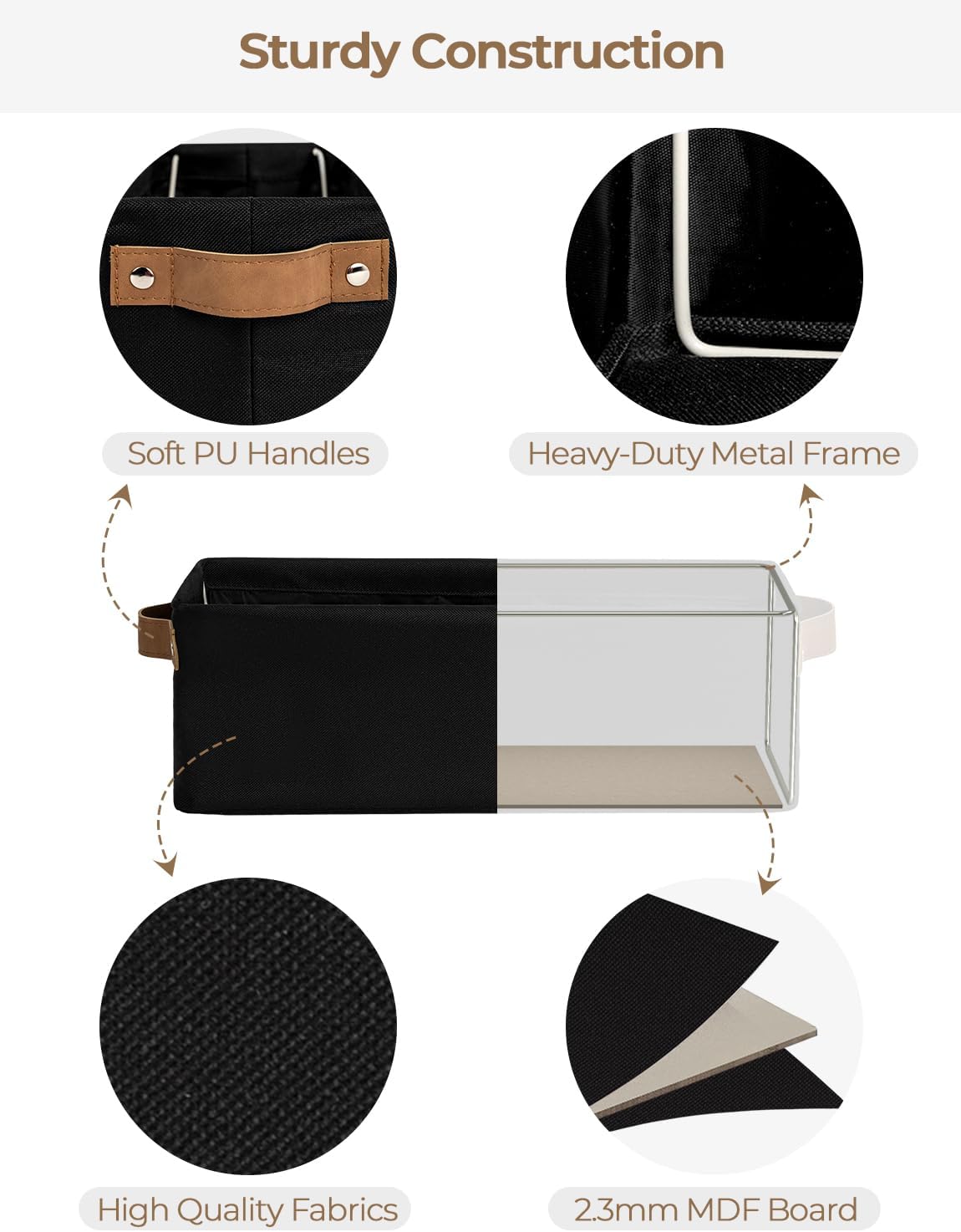 - Sturdy Structure: The fabric storage bin features metal frames supporting the top and sides, with a high-quality MDF base at the bottom, ensuring excellent overall structural stability.