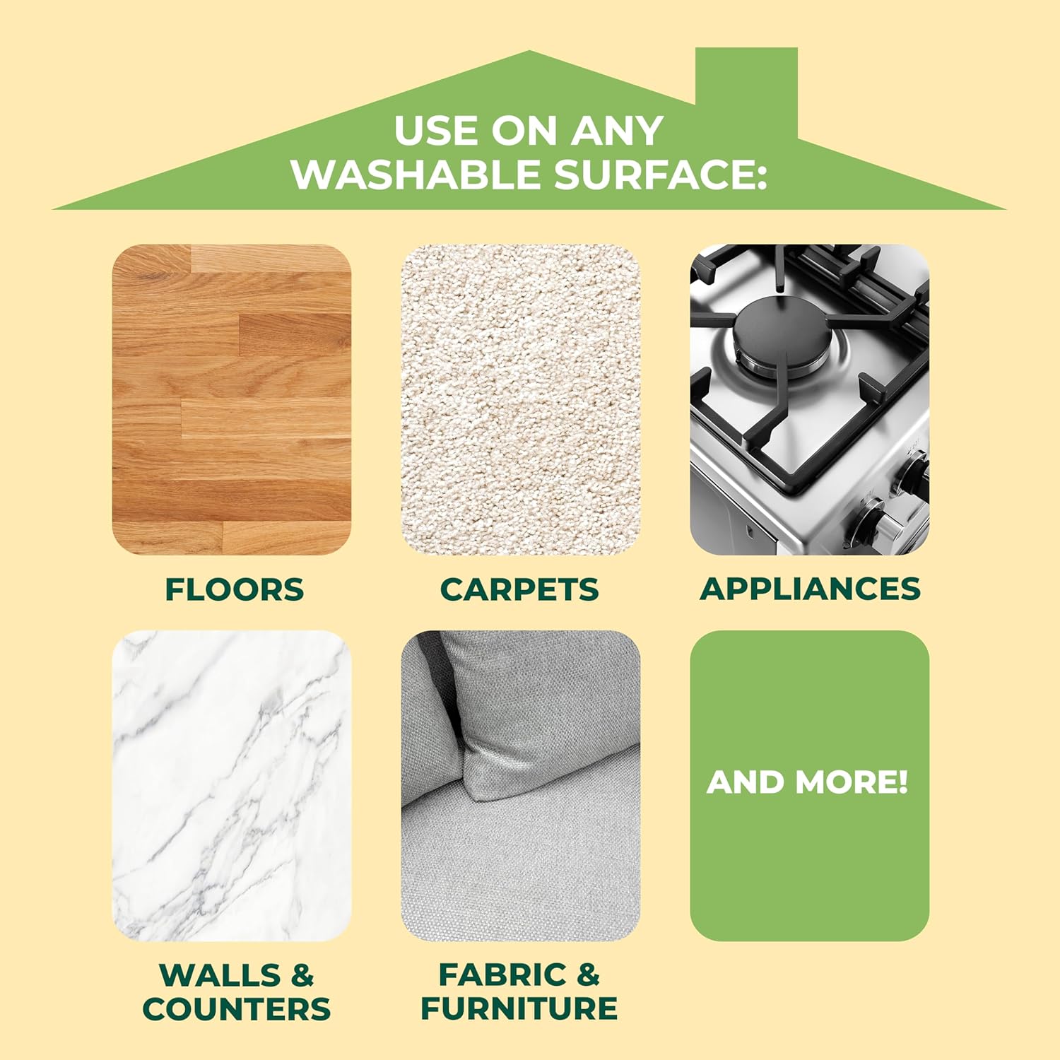 - For use on any washable surface. Cleans counters, carpet, floors, fabric, equipment and vehicles.