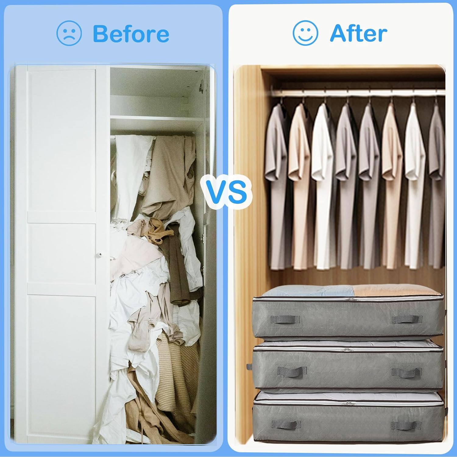 Under Bed Storage Containers, Thin Closet Organizers and Storage Bins with Lids,Clothes Storage Bags for Blankets, Comforter, Sweaters, Pillows
