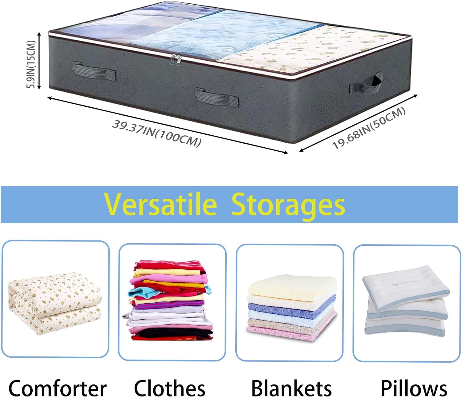- Large Capacity Storage:Our underbed storage bags ,100 x 50 x 15cm or 39 x 20 x 6 inch, you can store items such as blanket storage bags, bedding, linens, pillows, sheets, towels,clothes,Christmas wrapping papers and comforter organizers under bed storage bins
