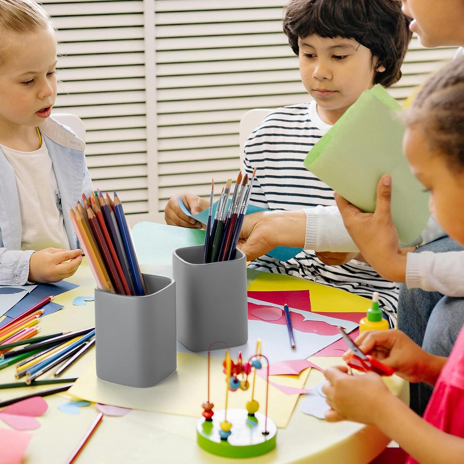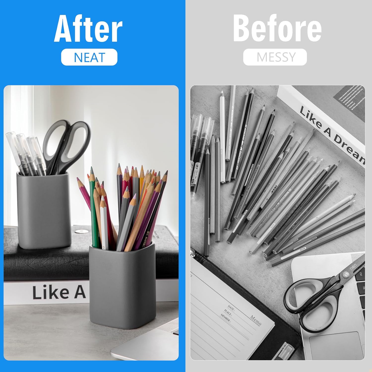 Pen Holder, 2 Pack Pencil Holder for Desk ,Ceramic Pencil Cup Desk Organizer, Makeup Brush Holder Cute, Stationery Accessories for Office, School, Home (Matte gray)