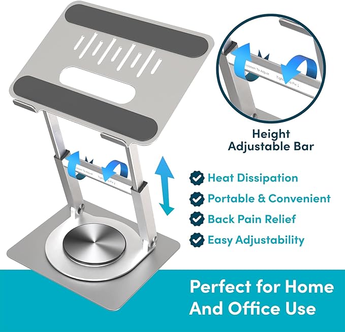 Lifelong 360 Rotating Ergonomic Laptop Stand for Desk, Laptop Riser with Swivel Base, Adjustable Computer Stand for 10-17" MacBook Pro & All Laptops- Portable Standing Desk Converter- Height 16"