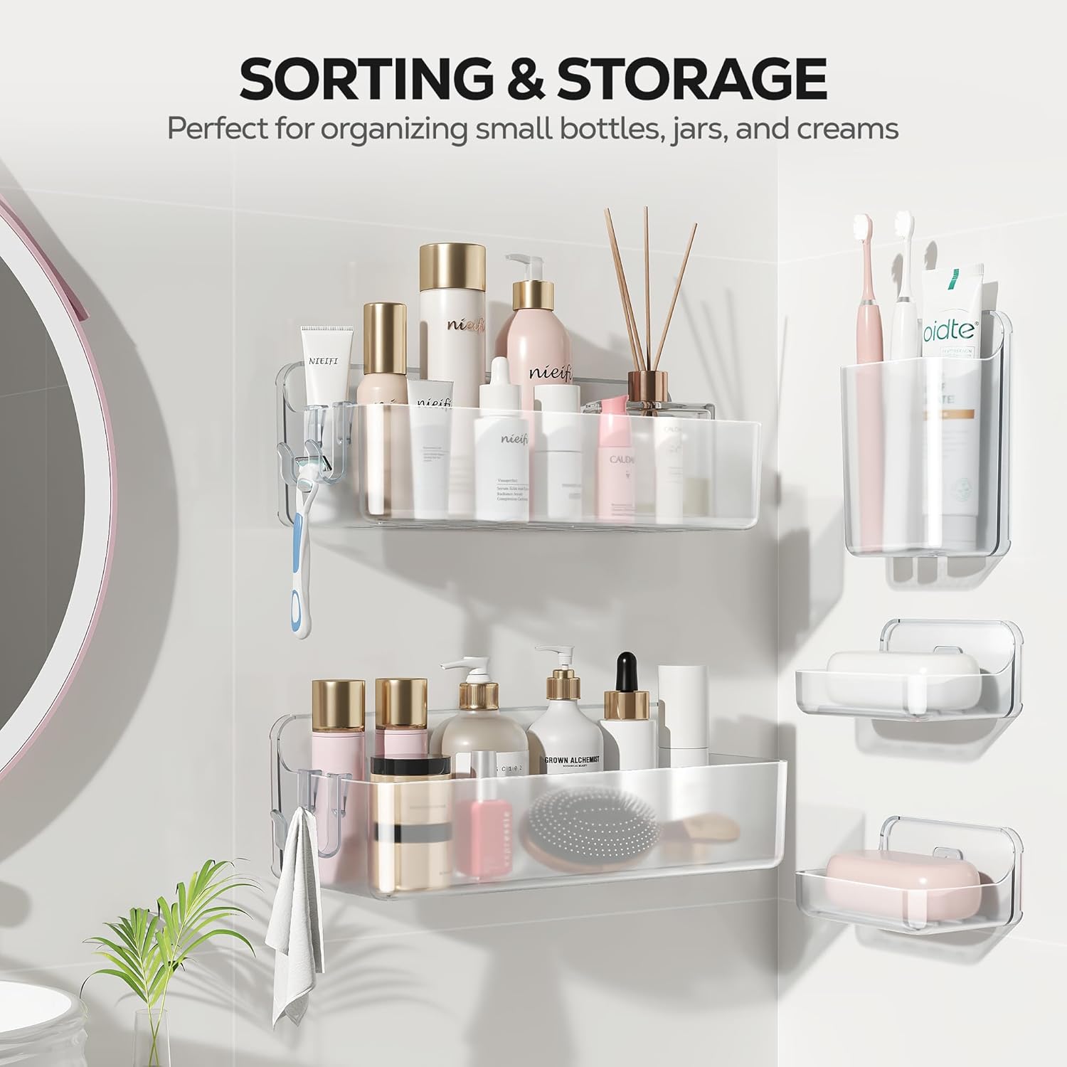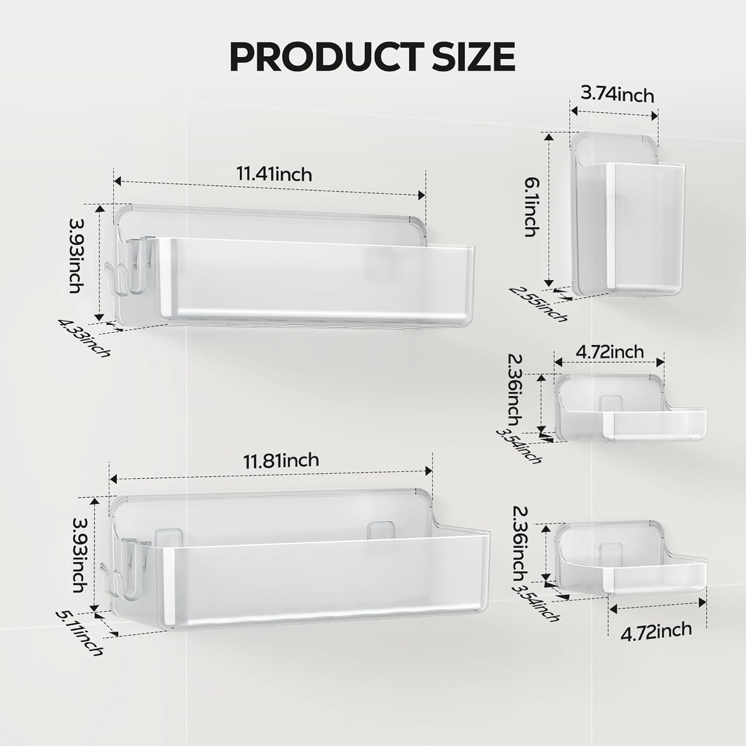 Nieifi Adhesive Wall Shelf, Shower Shelves 5 Pack with Soap Holder, Shower Organizer for Bathroom Organization, Clear