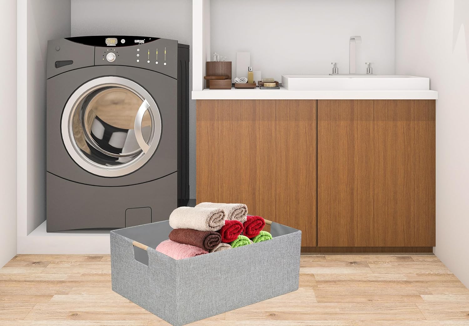 - Compact & Practical Design – 16.9"×12.5"×7" size with lightweight wooden handles for easy carrying, perfect for organizing closets, shelves, or tabletops.