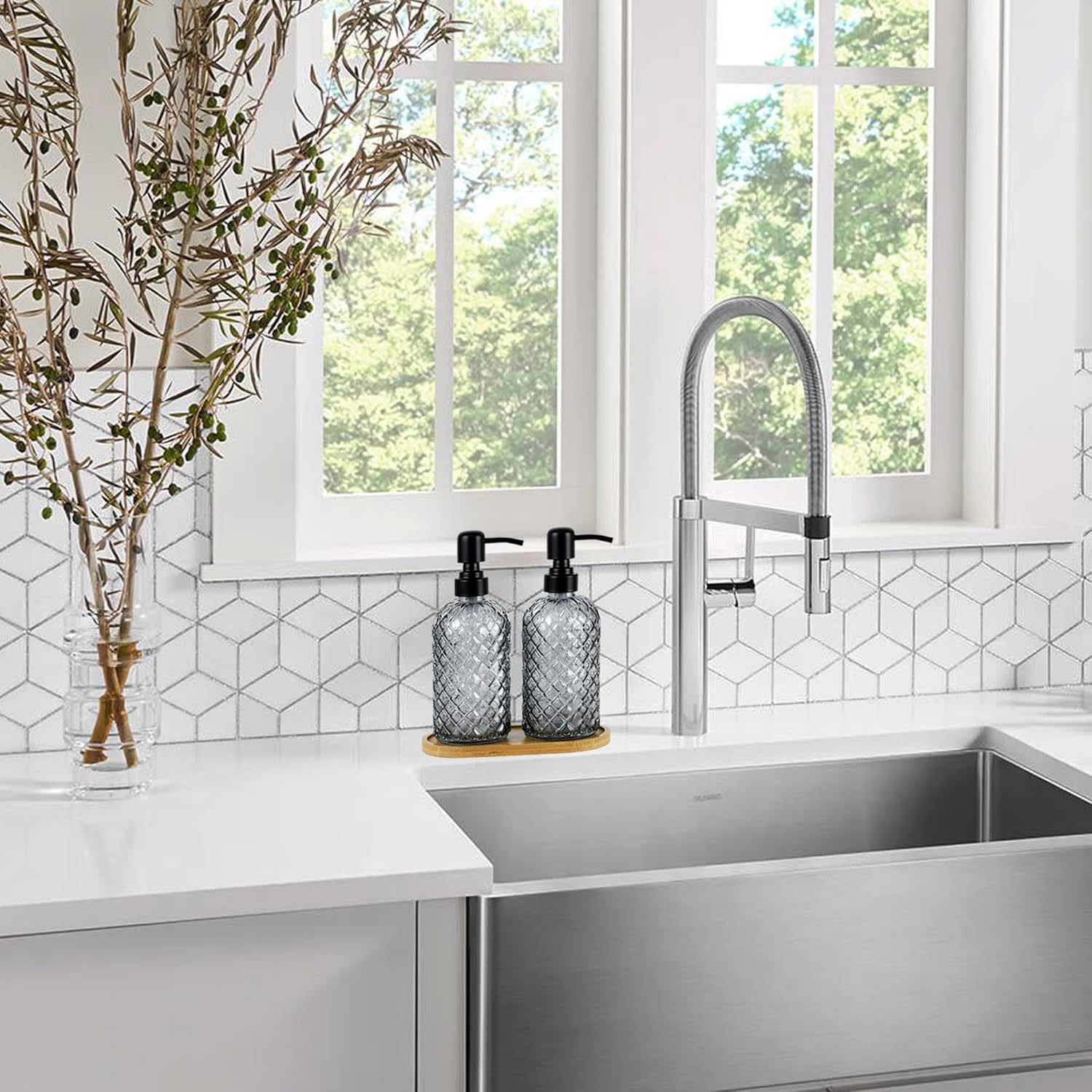 - Beautifully designed:The diamond shaped bottle design looks stylish and beautiful, perfect to dress up your kitchen, bathroom, desktop and so on!