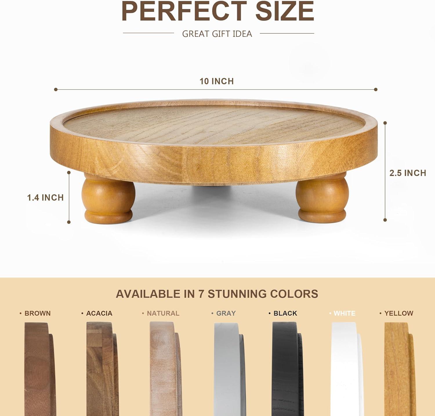 - [ALL-IN-ONE WONDER] Looking for a versatile organizer? This round wood tray riser does it all! Use it as a bathroom counter organizer to display a soap dispenser, a plant stand indoor for greenery, or a cake stand for baked goods. It’s equally perfect as a perfume organizer or a kitchen soap holder, keeping everything neat and within easy reach.