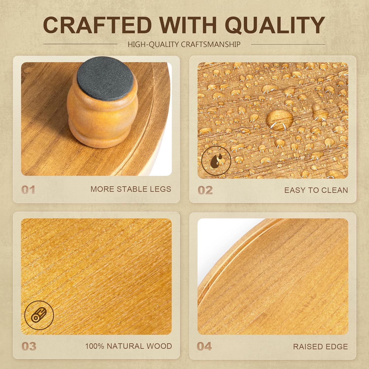 - [MADE TO LAST] Crafted from premium paulownia wood, this round tray riser is both sturdy and lightweight. Its protective coating makes it water-resistant and scratch-proof, ensuring sturdiness for daily use. Easy to clean with a damp cloth, it’s perfect as room decor or a bathroom organizer, combining style and function effortlessly.