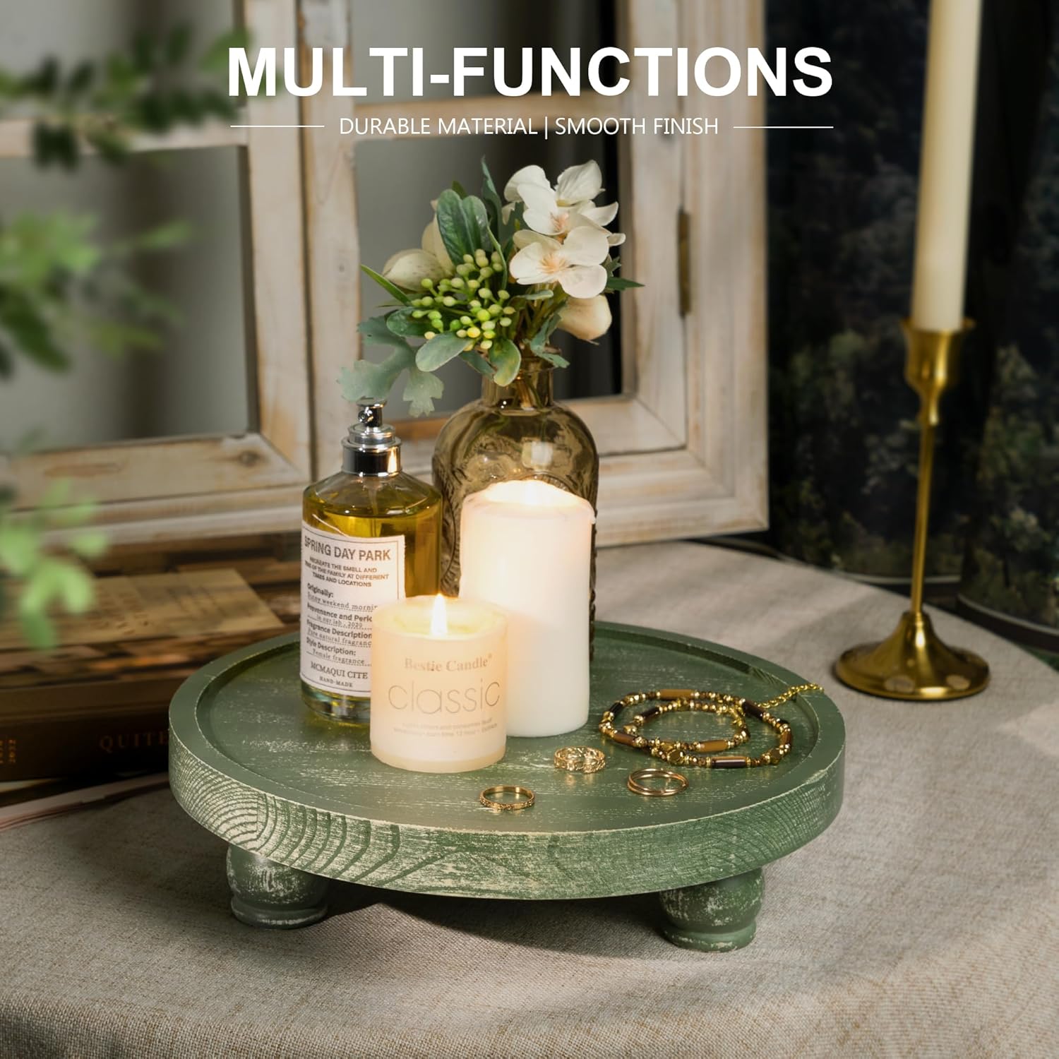 - [VERSATILE ORGANIZER] This green wooden riser isn’t just a tray – it’s a multi-functional gem for your home! Whether used as a plant stand, cake stand, or perfume organizer, it’s perfect for displaying candles, skincare products, pastries, or perfumes. Its compact size makes it a stylish solution for organizing your bathroom vanity or kitchen table with ease.