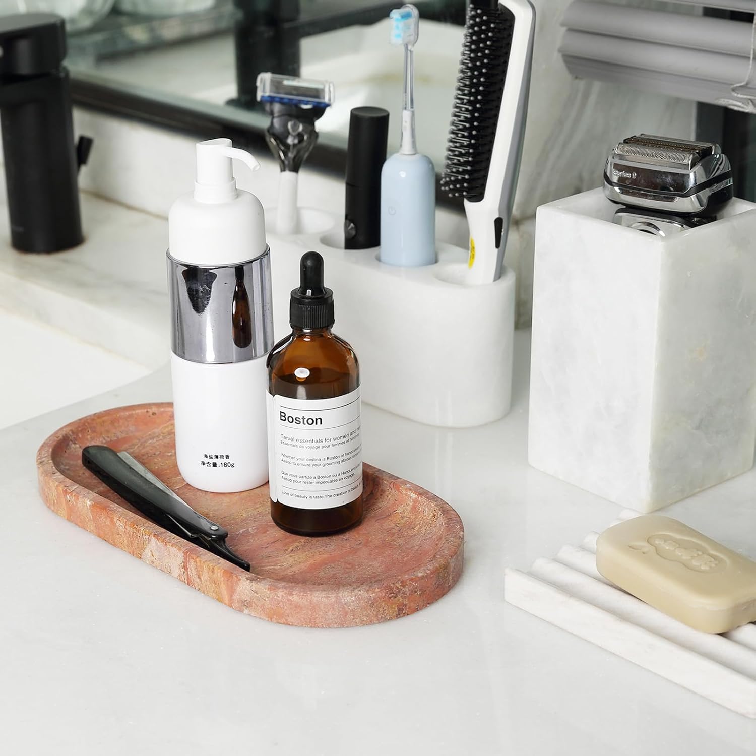 Koville Turkish Red Travertine Tray, 10" x 5" Vanity Decorative Marble Tray for Bathroom, Home Décor Trays for Countertop Organizer, Catchall Trays for Perfume, Candles, Jewelry