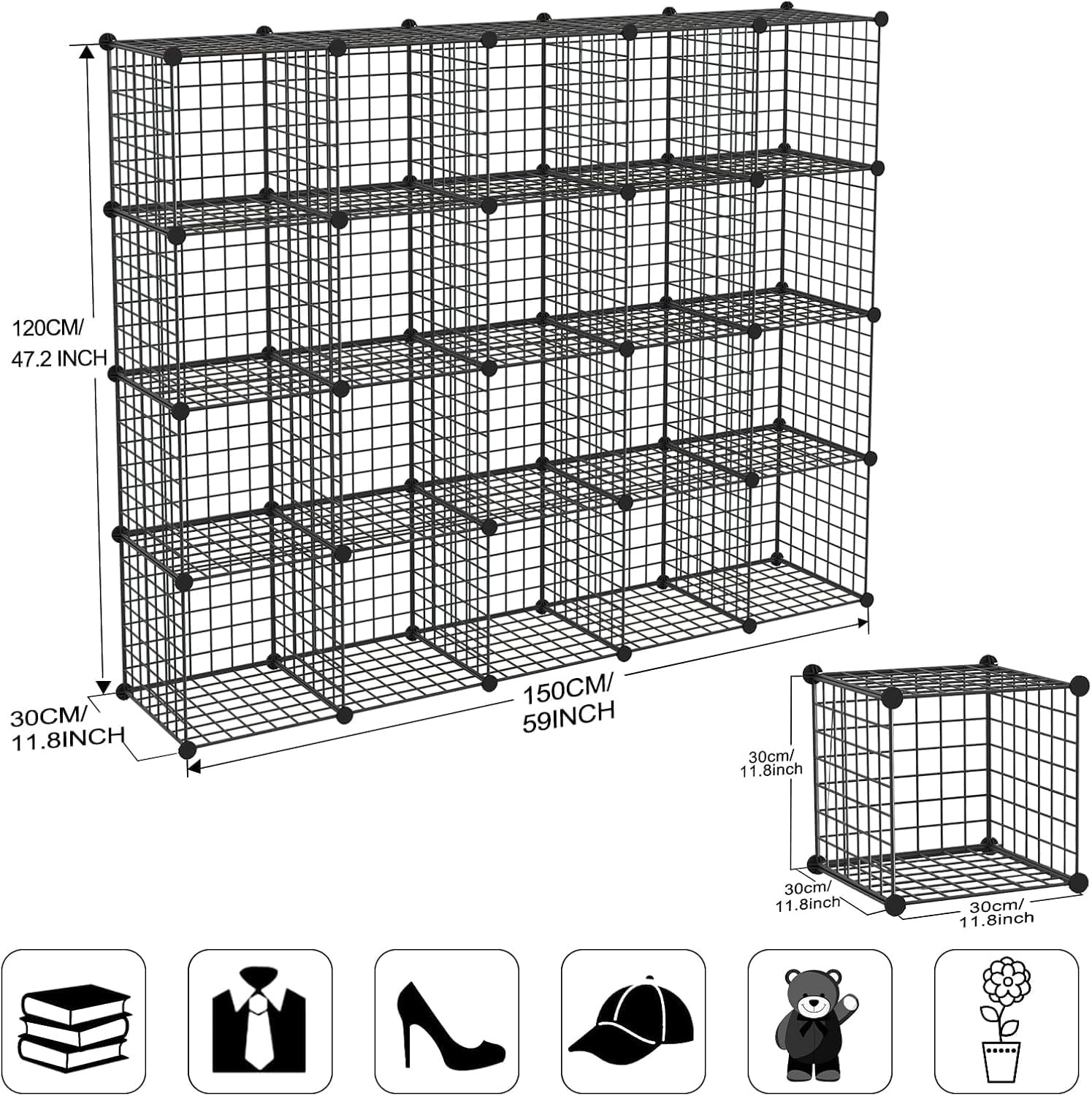 TUMUCUTE Wire Storage Cubes, Metal Storage Shelves Bookshelf, Stackable Modular Closet Organizer for Bedroom Living Room, Office, Black (20-Cube, Iron)