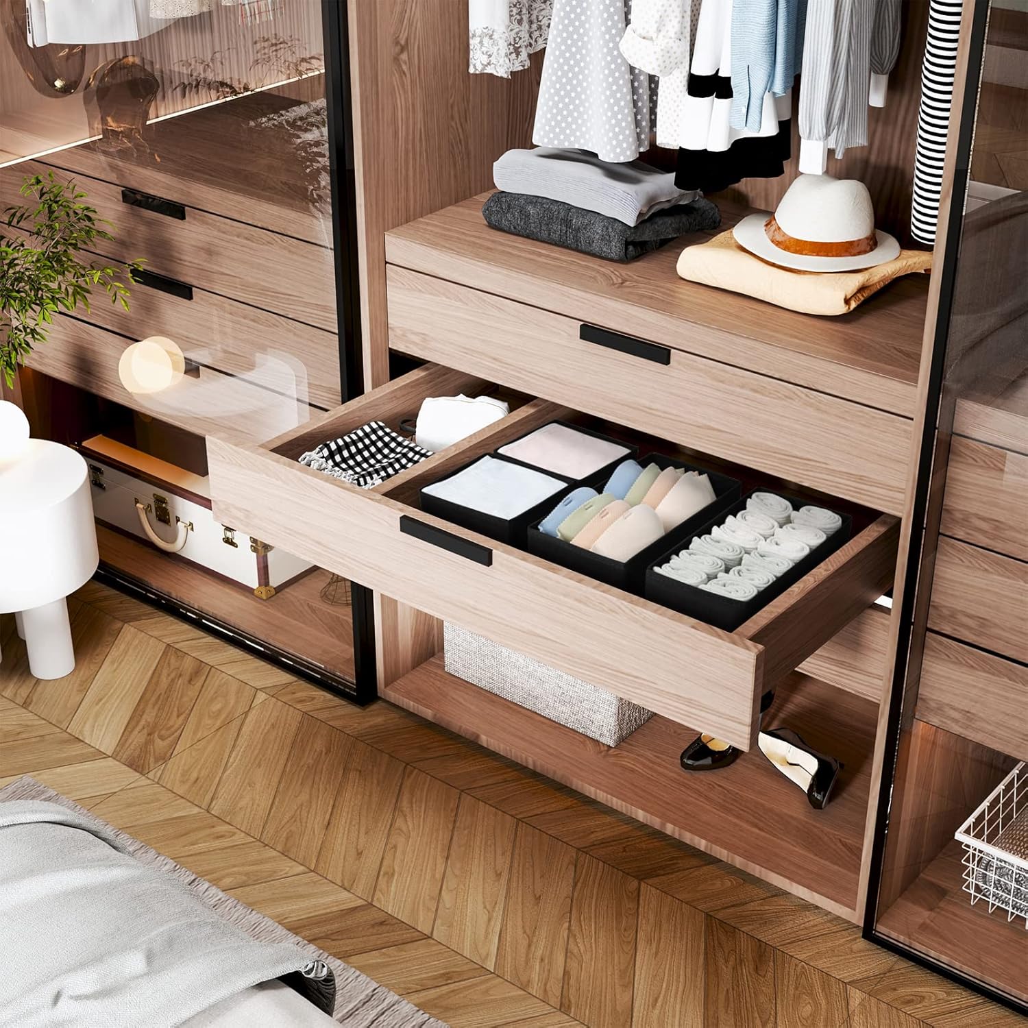 - [Multi-Size Organizer] The dresser organizers and storage choose 2 different sizes to match, you can store a variety of items, greatly improve your daily use. Medium underwear storage is 30*15*9cm (11.8*5.9*3.54") and small organizer drawers is 15*15*9cm (5.9*5.9*3.54")