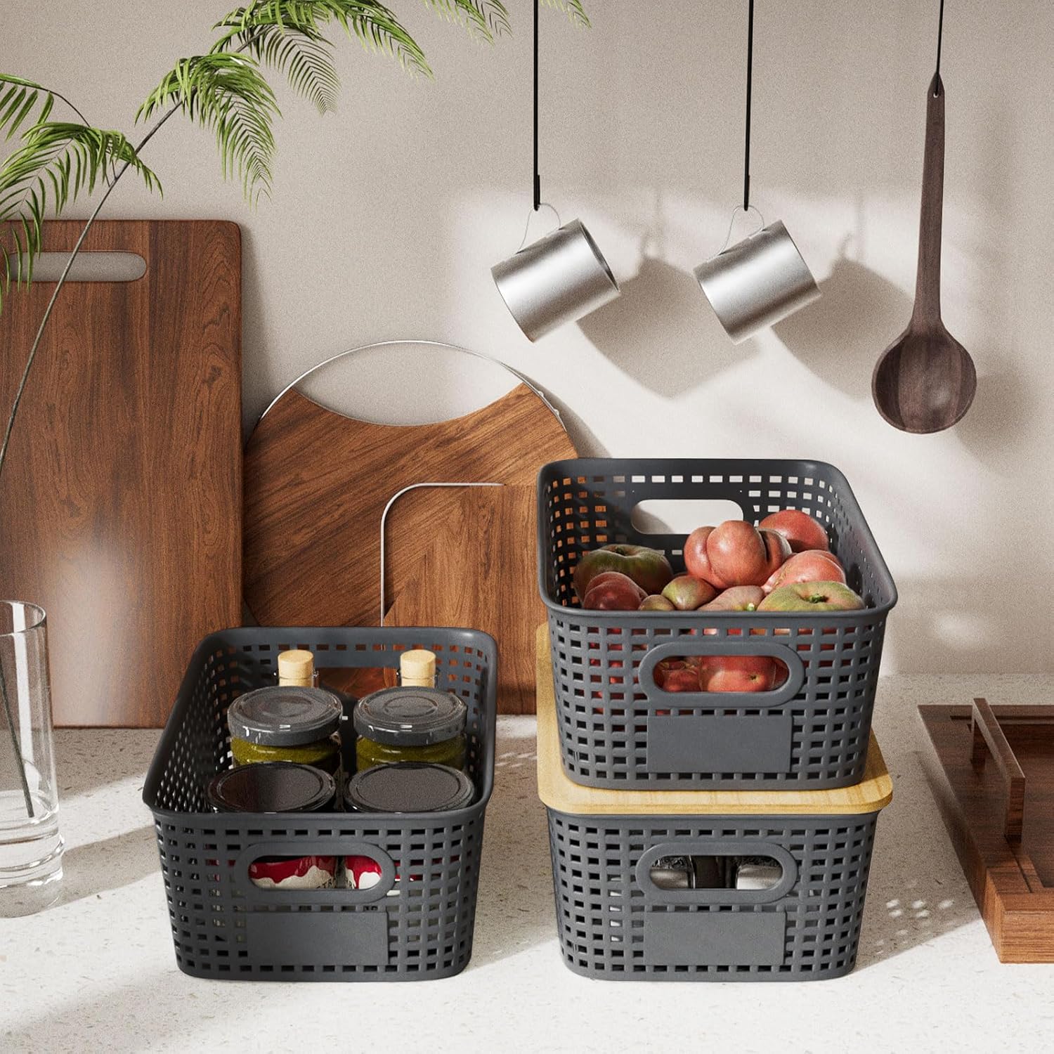 - 【Multi-Purpose Organization and Storage Solution】These small wiker storage baskets for organizing in your entire home. These versatile small storage box with lids are perfect for small space: use these small storage bins for snacks in the kitchen, storage baskets for toiletries in the bathroom, storage organizers for accessories in the closet. The flat lids keep everything dust-free and looking neat.