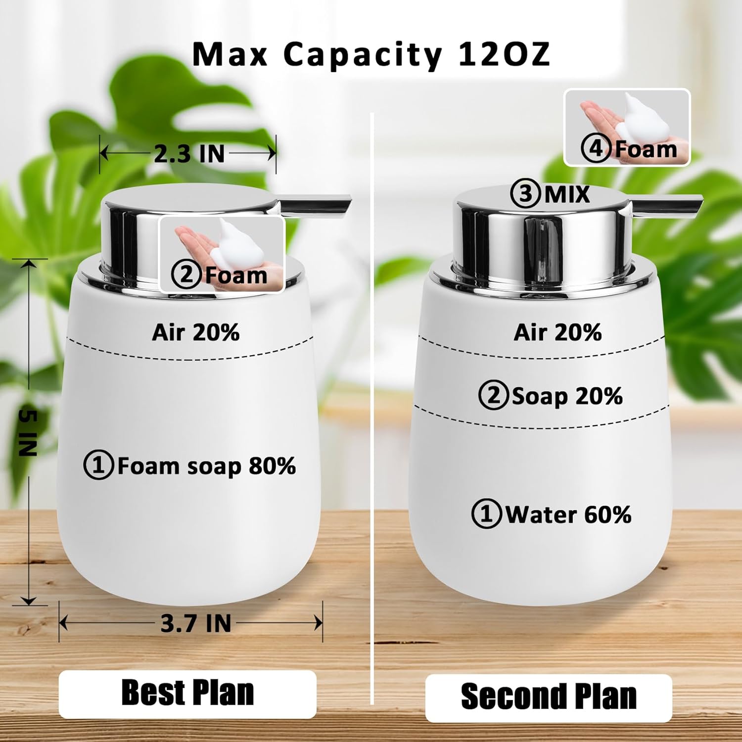 Soap Foaming Dispenser Ceramic with Easy-to-Press Pump Hand Foam Dispenser for Shampoo Bathroom Kitchen 12 oz