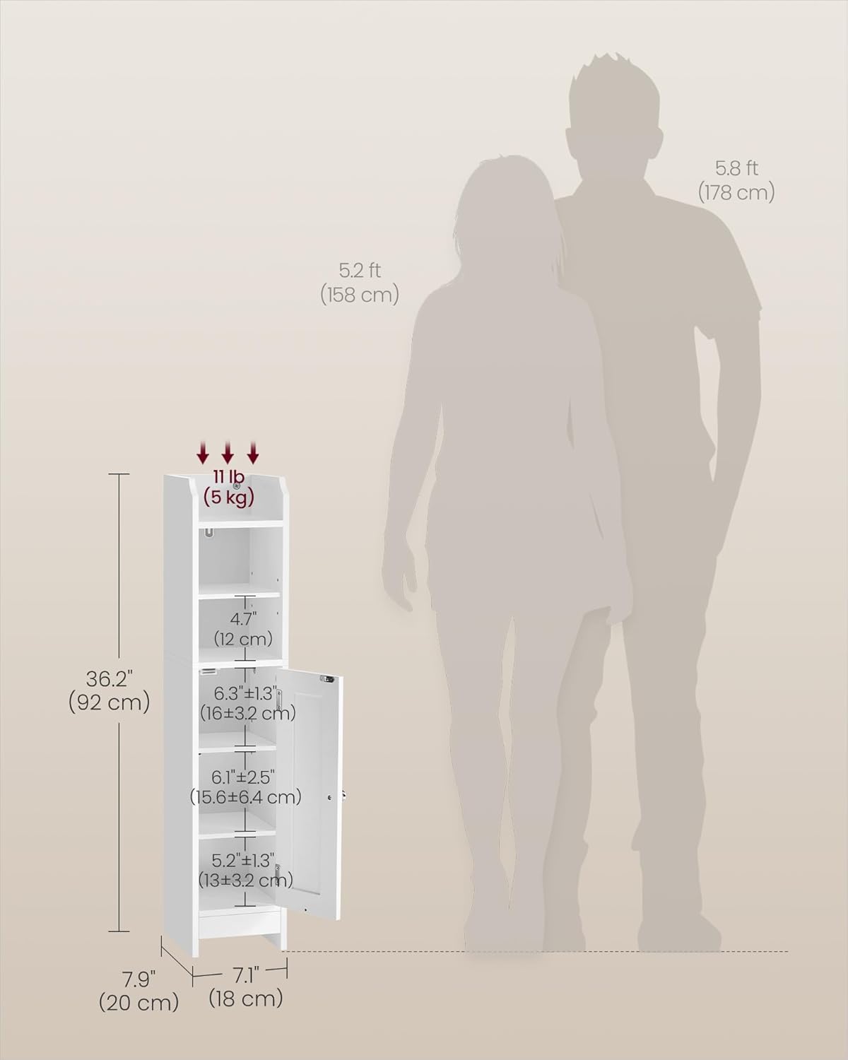 - Perfect for Narrow Spaces: Boasting a space-saving figure, sleek lines, and a white color, this 7.9"D x 7.1"W x 36.2"H storage cabinet fits perfectly in narrow spaces and elevates the aesthetic