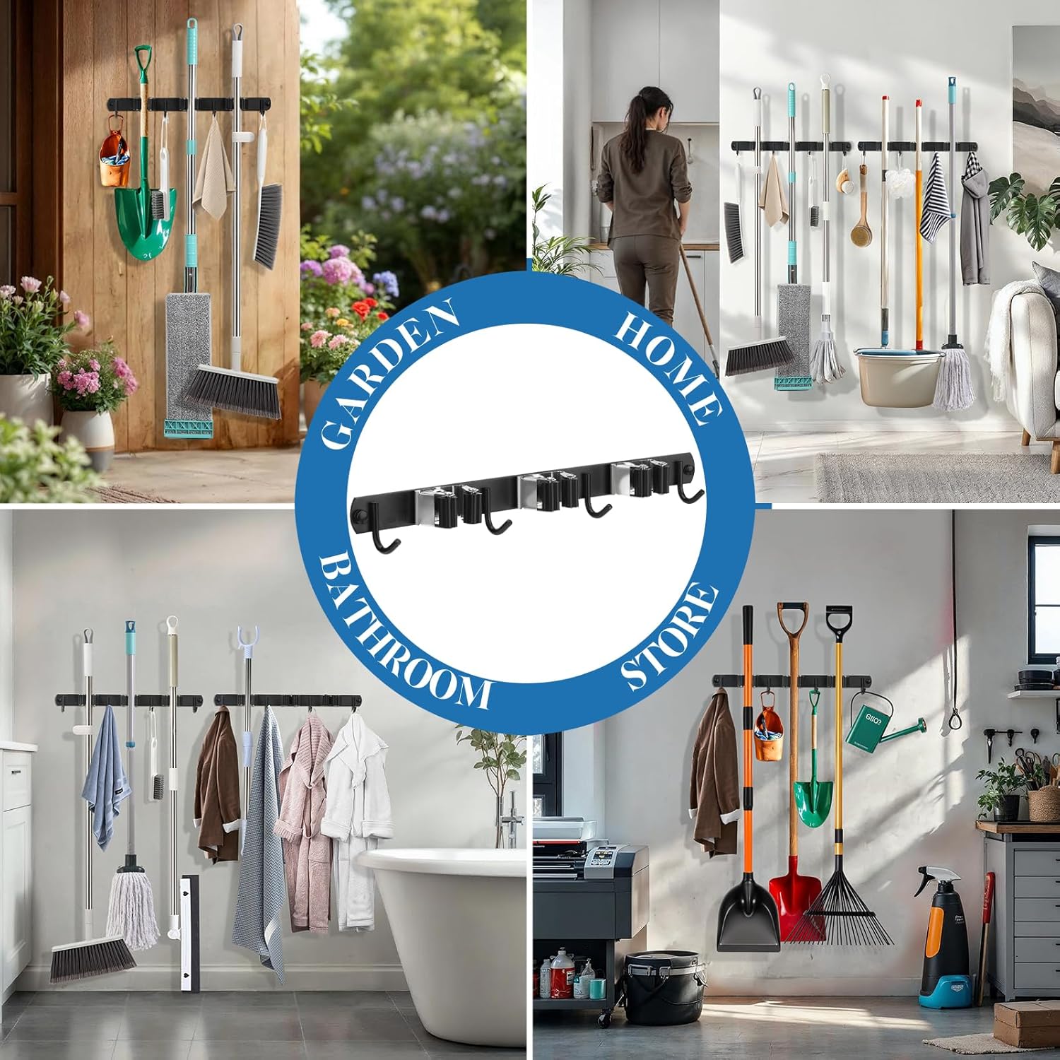 - WIDE APPLICATIONS: The mop hanger wall mount is designed to hold various household objects to save space.You can easily organzier your home,such as laundry,room,kitchen,garage,basement.It also works garden or a shed,let you have a more comfortable living space