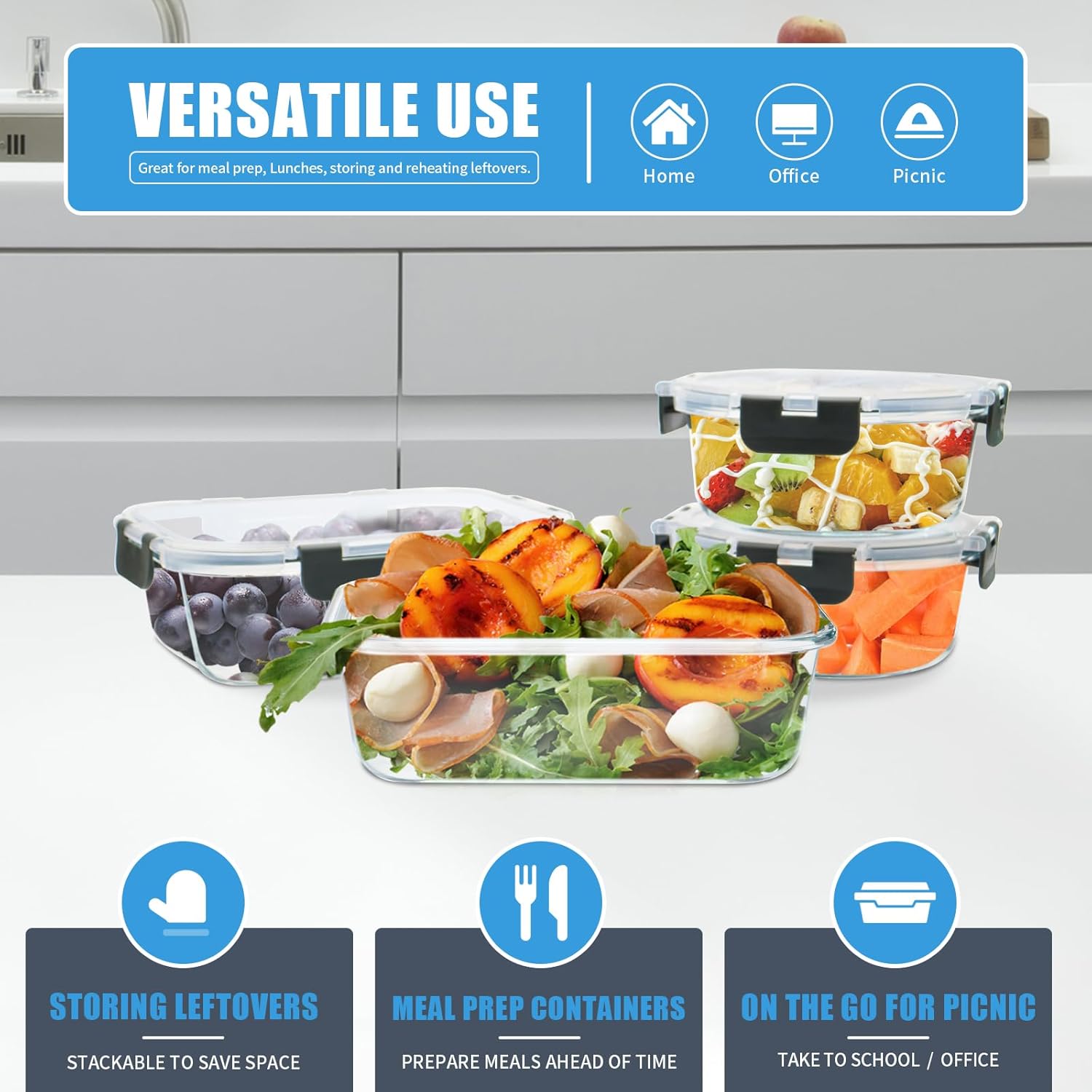 - 【100% Leak Proof Airtight Lid】Glass food containers is designed with removable silicone seals and 4-hinge snap locks to ensure zero leaking or spilling, which also prevent smell go out and keep food fresh.