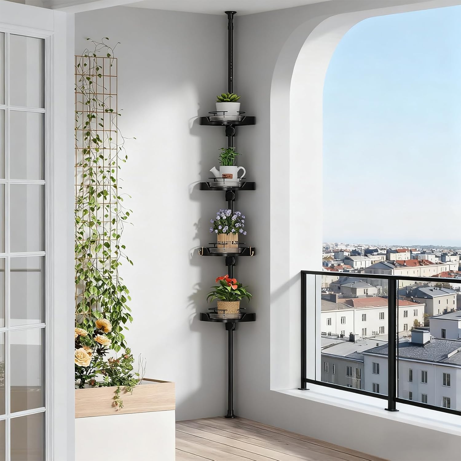 - 【Fits All Shower Heights】The adjustable shower shelves fit most showers from 35 to 128 inches. Whether it is a high-rise apartment or a low-rise residence, you can adjust it according to the actual height of the bathroom; at the same time, the freestanding shower organizer can be placed not only in the bathroom, but also in the kitchen, RV, laundry room, etc., to making your bathroom or shower looks nice and organized. (Note: This shower caddy set is not designed for sloped ceilings)