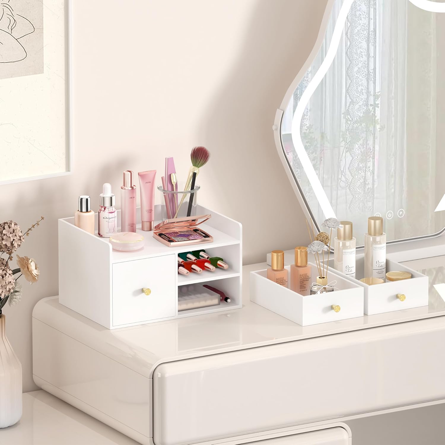 - Storage and Versatility:Dimensions: 12.2" x 8.66" x 7.09"LWH). This desktop organizer features multiple drawers to help organize office supplies, documents, stationery, and other desk essentials, keeping your workspace clutter-free and efficient. It’s ideal for use in the office, study, dresser, bathroom, or countertop.