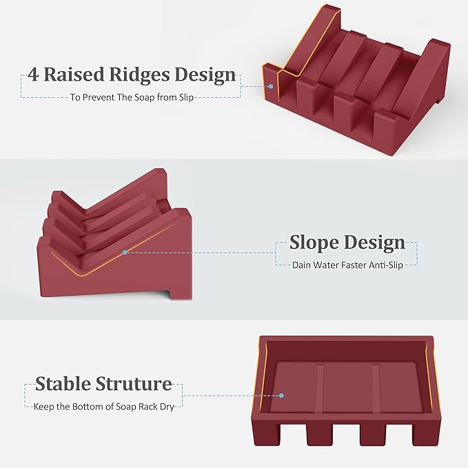 - 【Upgraded materials】This shower soap holder is made of primary high purity silicone, no impurities and no foaming, non-slip and resistant to drops, we use exquisite craftsmanship and attention to detail, this silicone soap dish has a super high stability and durability performance.