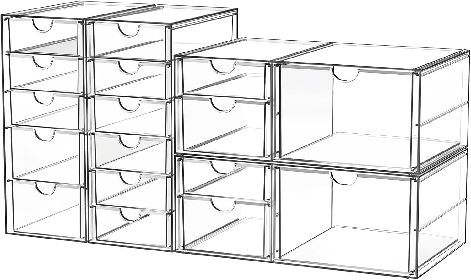 - Acrylic makeup organizer with 17 Drawers: Our Acrylic makeup bathroom organizer can maximize space on shelves, dressers ,under the sink, and bathroom counters. There are 17 drawers in total, it’s perfect to organize all your messy items into section, and very easy to take. You can also use them side by side, put your small objects on top of acrylic bins to make your countertop space more tidy. And 4 Pack storage bins with 17 drawers are also enough for you to place in multiple places, very good value.