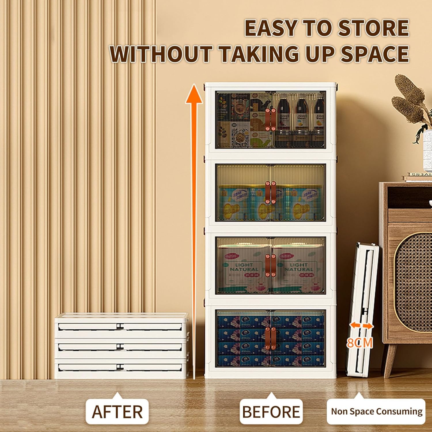 - 【Clear Visibility & Space-Saving Mobility】Transparent open-front panels provide instant content access, paired with stackable storage bins with wheels for smooth mobility across floors. Tool-free assembly snaps layers in seconds, while the foldable storage cabinet adapts to compact spaces like entryways or dorm rooms. Magnetic closures secure doors, maximizing vertical storage in collapsible units, and the wheels could be locked in place for security needs