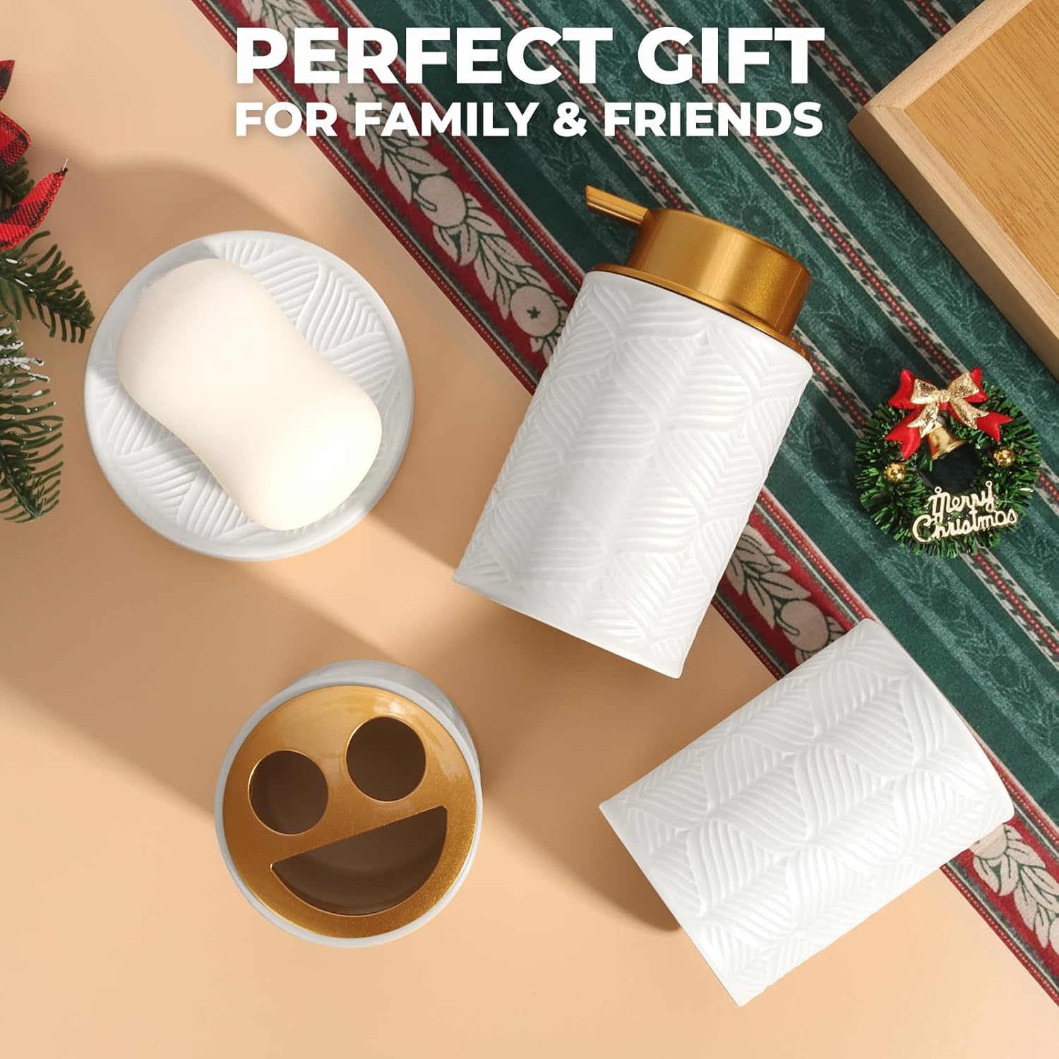 - 【Perfect Gift Choice】: The 4-piece bathroom vanity set makes a delicate and practical gift for housewarmings, weddings, birthdays, Christmas, New Year, Thanksgiving, Mother's day and any other special occasions and festivals.