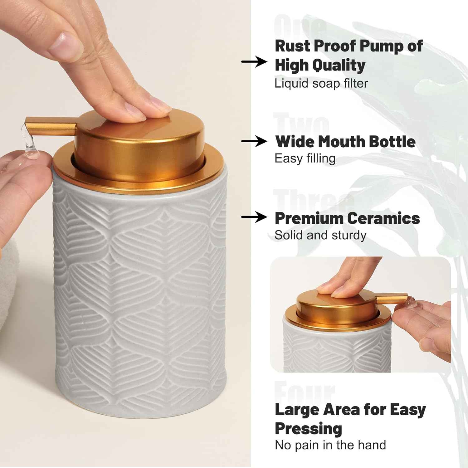 - 【High-quality Ceramic Material】: Made of durable and sturdy ceramic material, these grey bathroom accessories are solid, rust-proof and long-lasting.Ceramic is easy to clean and maintain, making these accessories a practical choice for any bathroom.