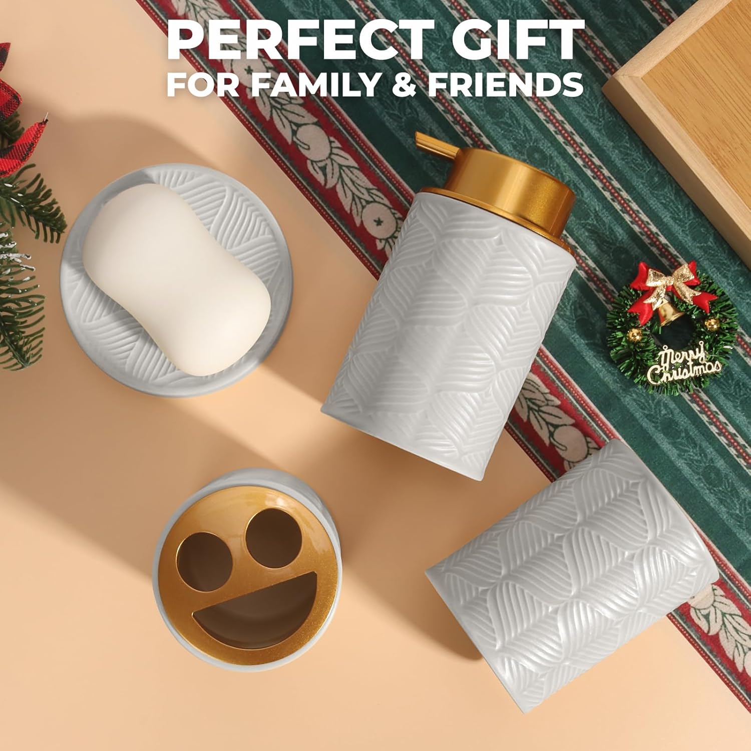 - 【4-Piece Bathroom Set】: Our elegant and classic bathroom accessories set includes a soap dispenser, toothbrush holder, vanity tray and bathroom tumbler. This stylish bathroom accessory set is perfect for organizing your bathroom essentials.