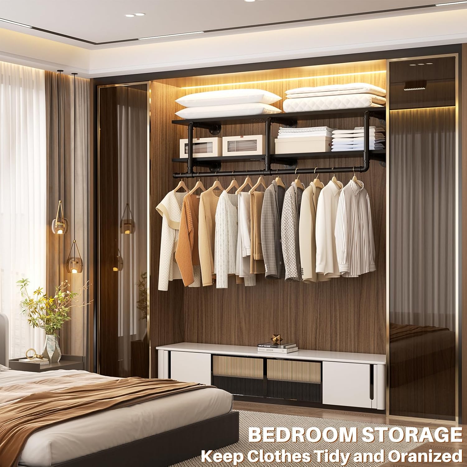 - 【Widely Used Closet Rack】Pipe Garment Rack with Hanging Rod maximize the storage area, ensure you have enough space to place your clothes, aetc. This versatile wall hanging rack isn't just for organizing your clothes, hats, bags, and scarves—it also gives you the freedom to hang decorative plants, adding a personal and refreshing touch to your space.