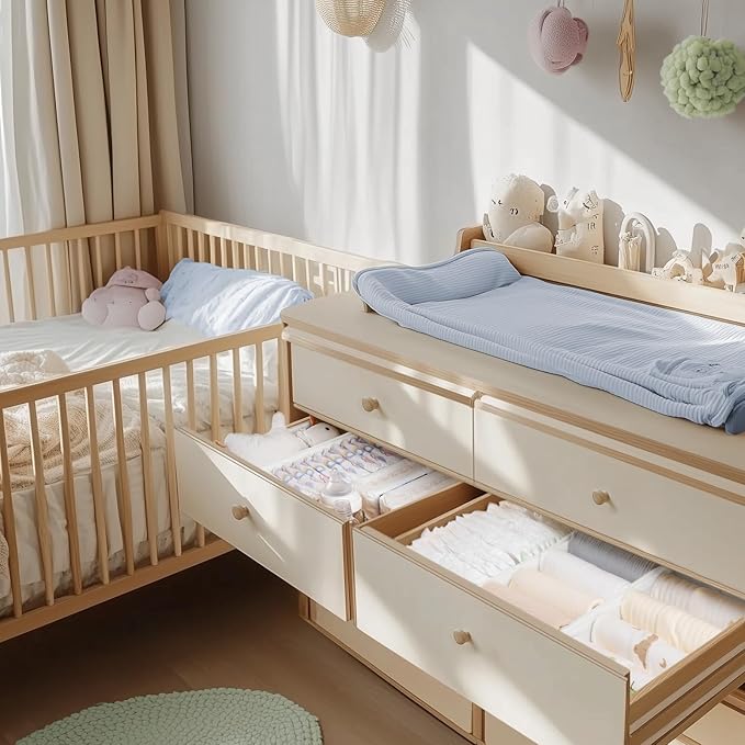 - Durable Design:Crafted from sturdy non-woven fabric, these dresser drawer organizers feature high-quality stitching for enhanced durability. Reinforced with heavy plastic boards on the sides and bottom, these bins maintain their shape over time. They are also odorless, making them ideal for storing baby clothes