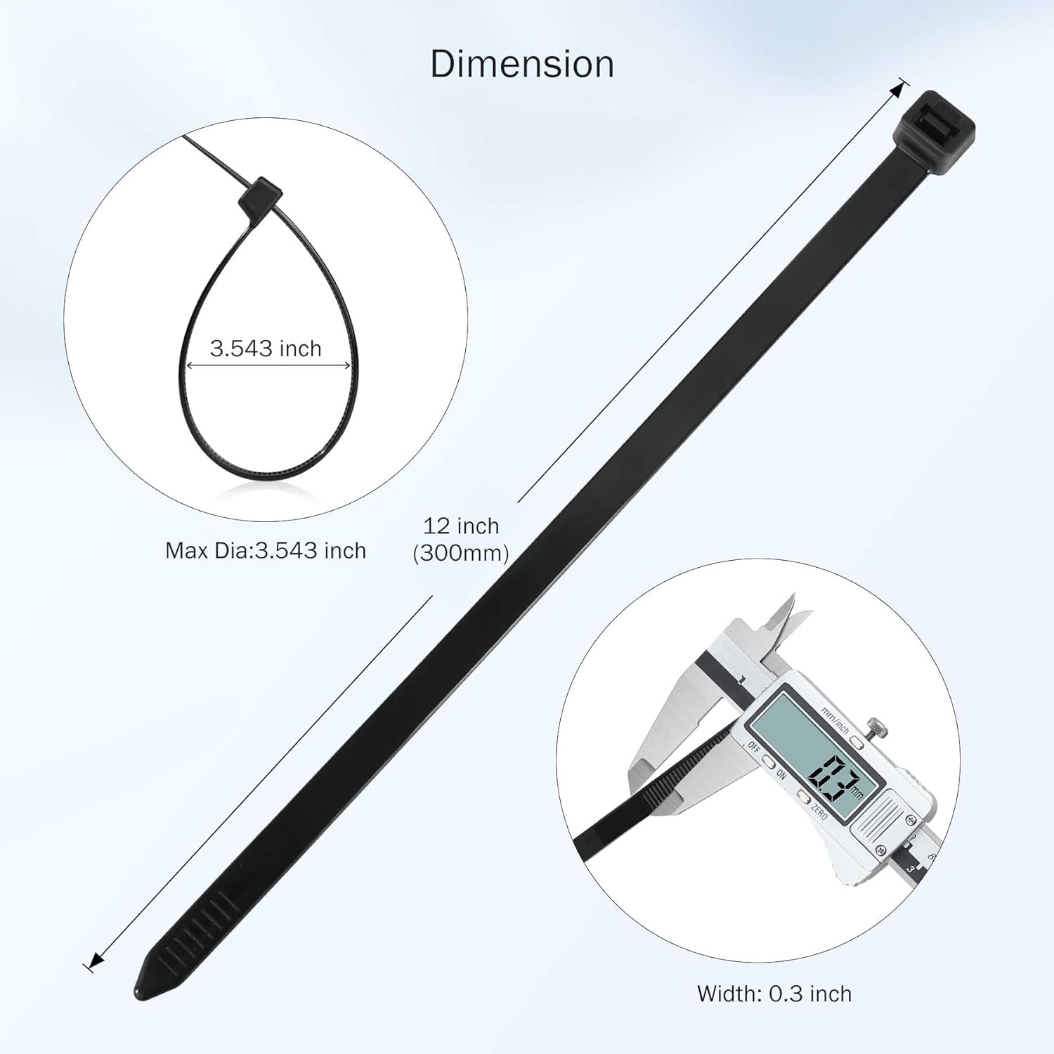 Cable Zip Ties 12 Inch Strong Black Assorted Cable Ties 100 Pack, 120 LBS Tensile Strength Heavy Duty Zip Ties, Multi-Purpose Self-Locking Cable Cord Management, Wire Ties for Indoor and Outdoor