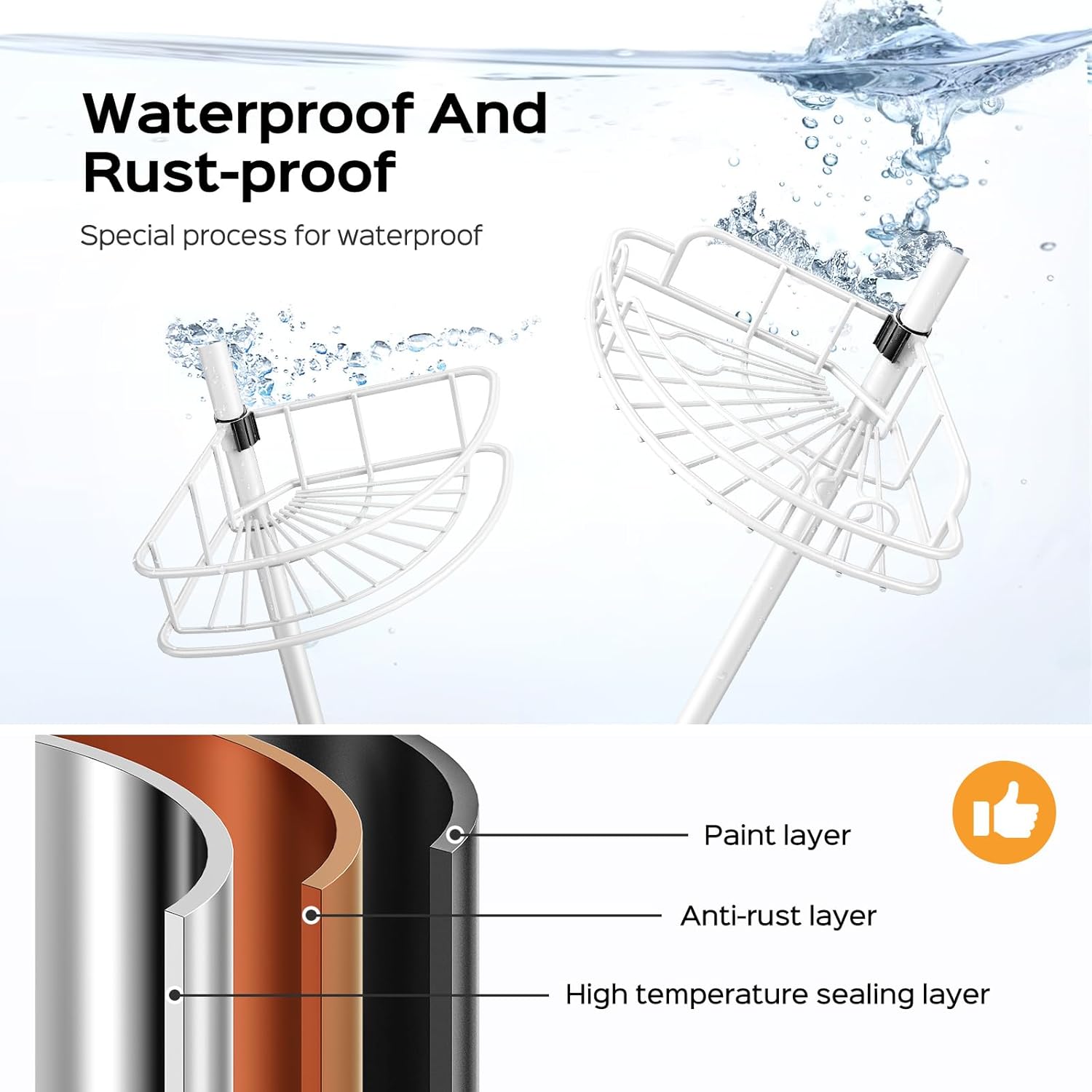 - RUST-RESISTANT WATERPROOF MATERIAL: Made of stainless steel and coated metal, the shower caddy corner withstands humid environments and provides lasting use. Each shower shelf is stable, rustproof, scratch-proof. The hollow design allows for good ventilation and drainage, easy to clean