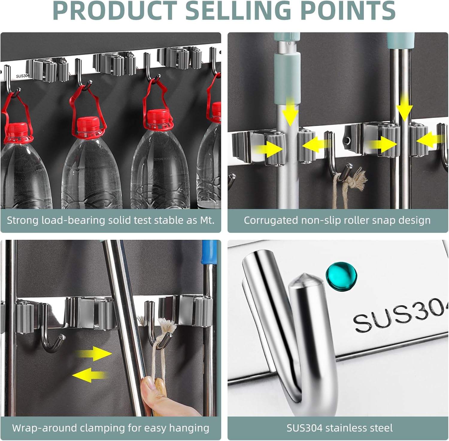- Heavy Duty: The mop rack can firmly grasp all items without slipping, keeping your environment clean and tidy, keeping items organized