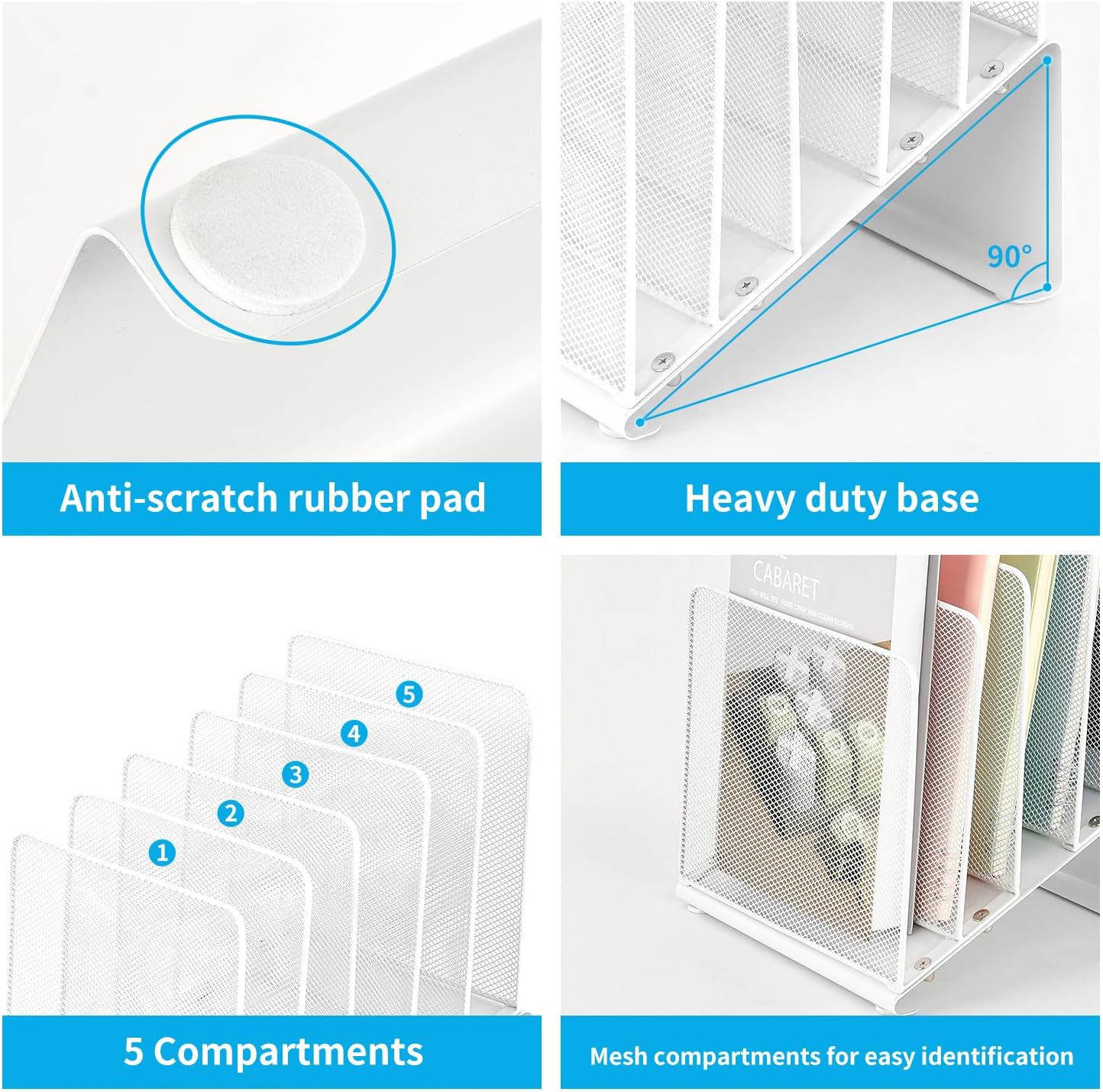 File Organizer for Desk, Desk Organizer with 5-Section Vertical File Rack, File Folder Organizer, Desk Accessories & Workspace Organizers(White)