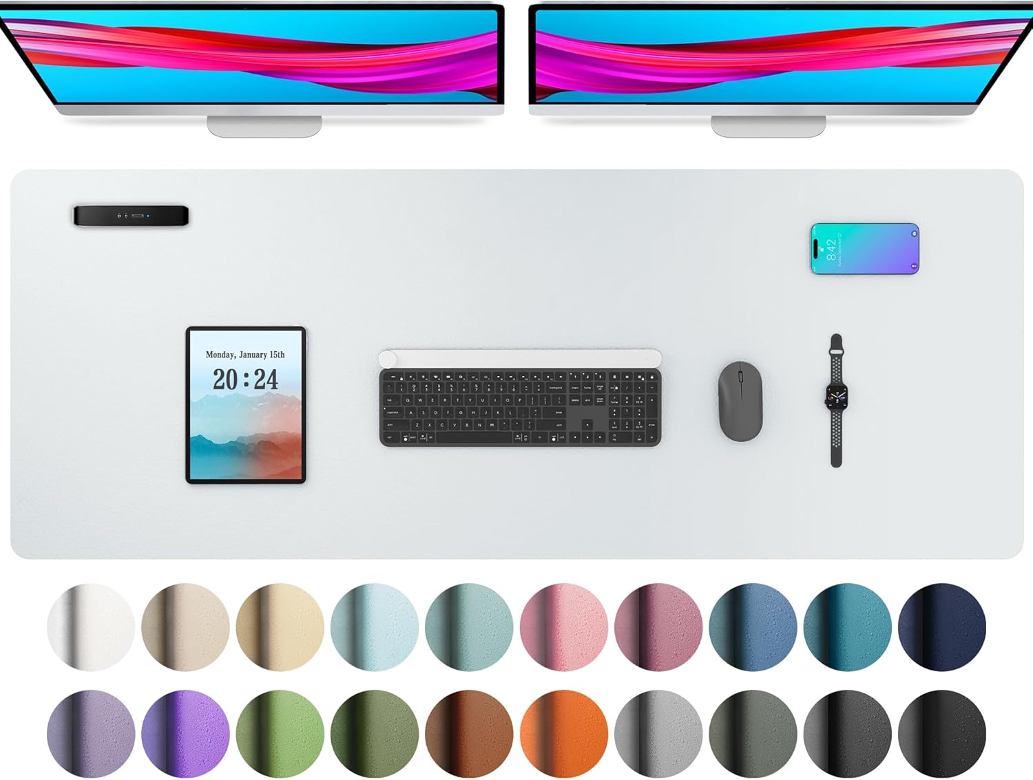 Aothia Leather Desk Pad Protector, Office Desk Mat, Large Mouse Pad, Non-Slip PU Leather Desk Blotter, Laptop Desk Pad, Waterproof Desk Writing Pad for Office and Home (48"x17", Barely Grey)