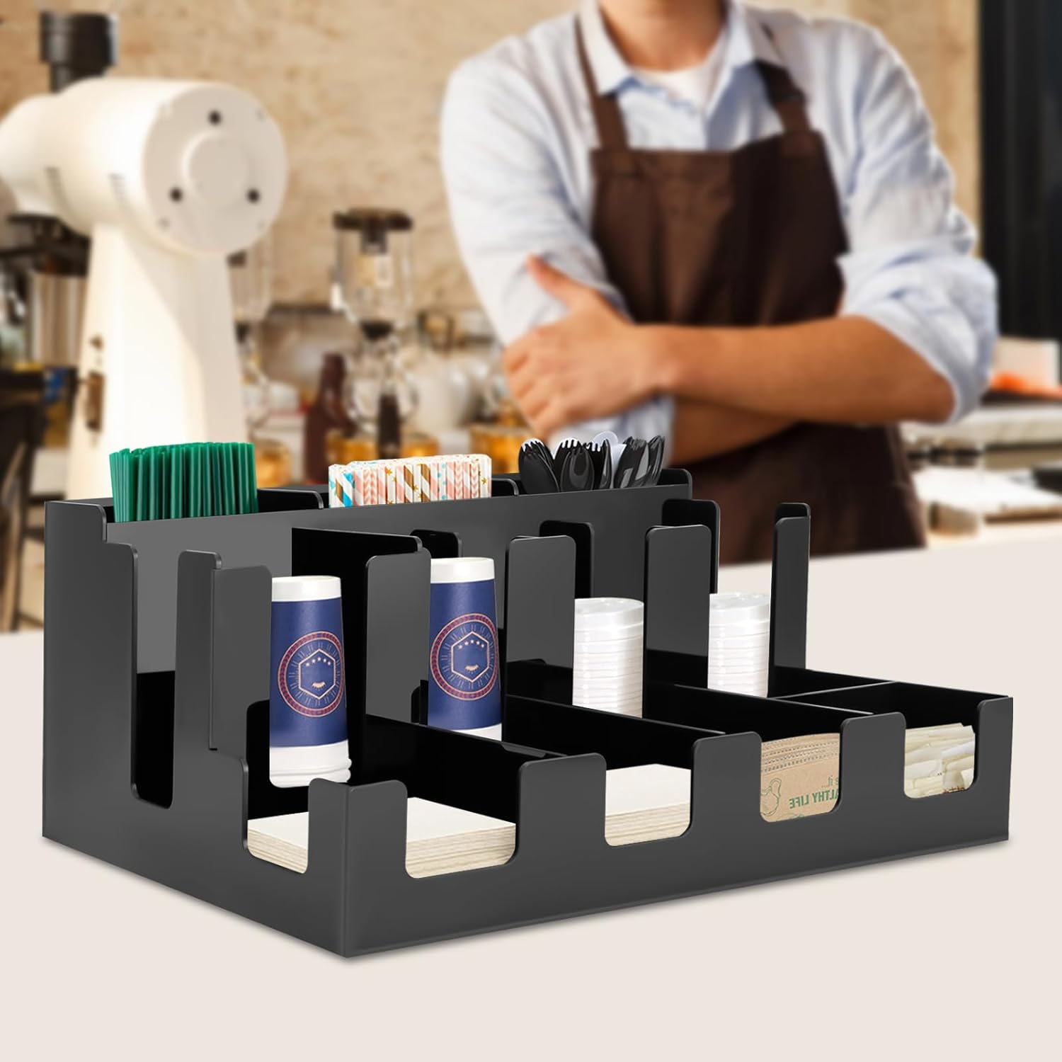 - Easy to Access: The open design enables easy access to cups, sugar packets and other condiments, optimizing efficiency. The partition ensures that each condiment has a fixed position, making it easy to find.