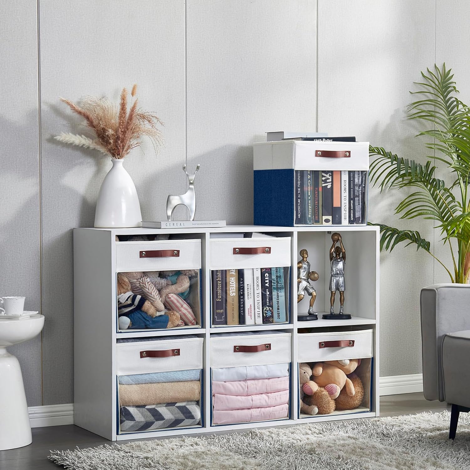 - [Multi-Purpose Use] These fabric storage cubes for organizing can be used in shelves, cabinet, bedroom and office. The elegant appearance of the storage cubes is perfect for all room styles. The cube organizer bins are good at storing clothes, shoes, towels, magazines, small records and albums. The foldable storage cubes are good storage helpers for your whole family.