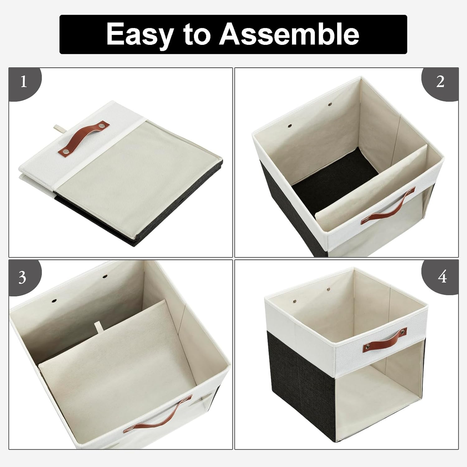 - [Exquisite Details] The handles of the storage cubes are made of soft leather, durable and classical. 2.5mm high quality cardboard on the sides and bottom help the storage bins keep firm and unbending. The heavy cardboard on the bottom is sewn together with the bottom fabric so you will not lose or forget it when you fold up the cubes.