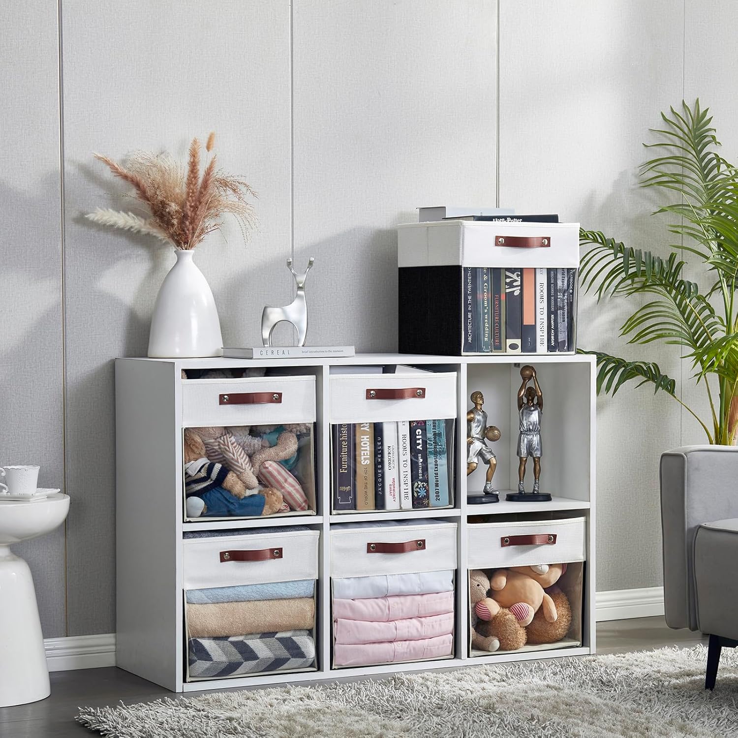 - [Multi-Purpose Use] These fabric storage cubes for organizing can be used in shelves, cabinet, bedroom and office. The elegant appearance of the storage cubes is perfect for all room styles. The cube organizer bins are good at storing clothes, shoes, towels, magazines, small records and albums. The foldable storage cubes are good storage helpers for your whole family.