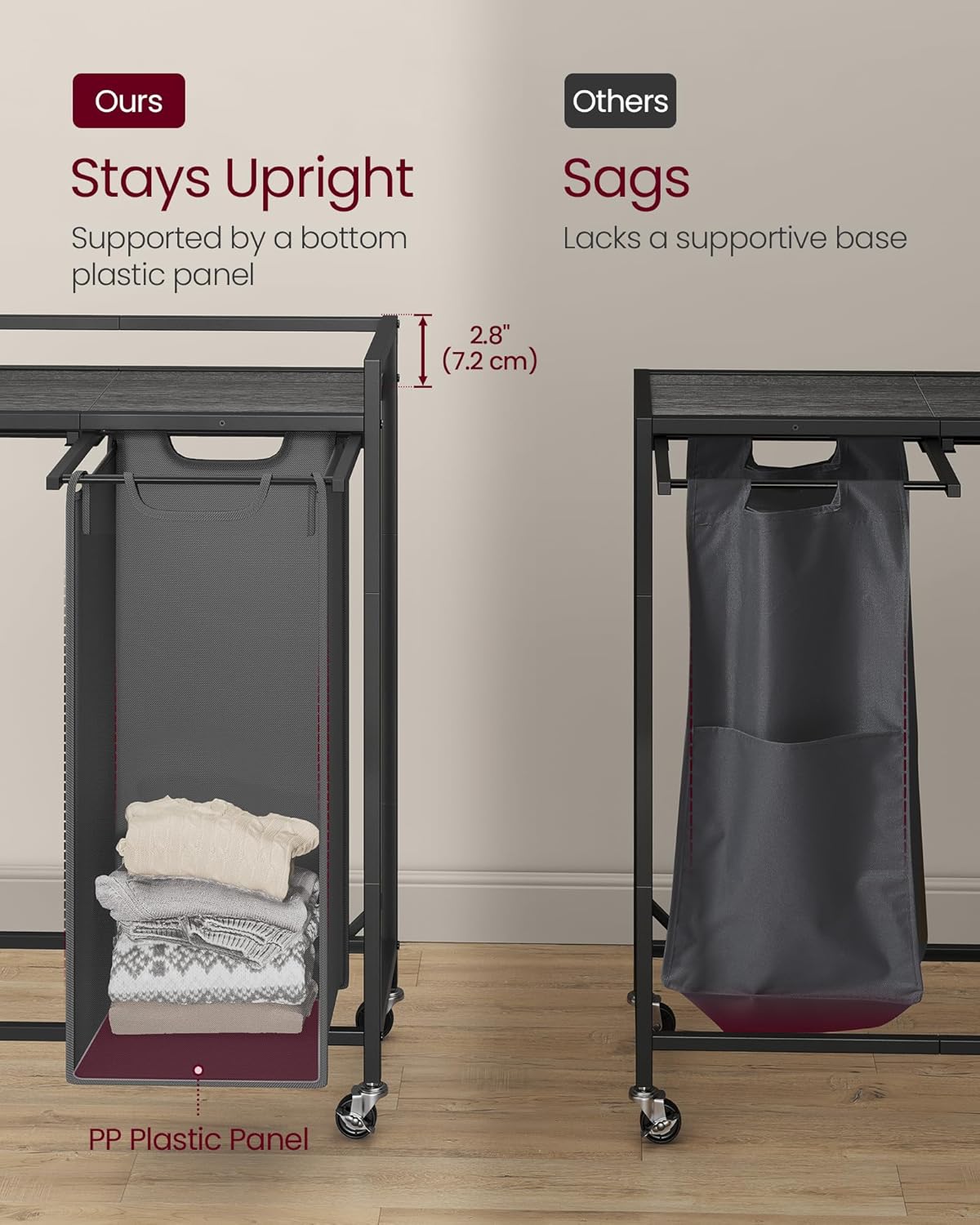 - Sturdy and Durable: Made with 0.6" thick steel tubes and particleboard, this laundry cart can support up to 44 lb on its top shelf. The bags are made from water-resistant Oxford fabric for lasting use