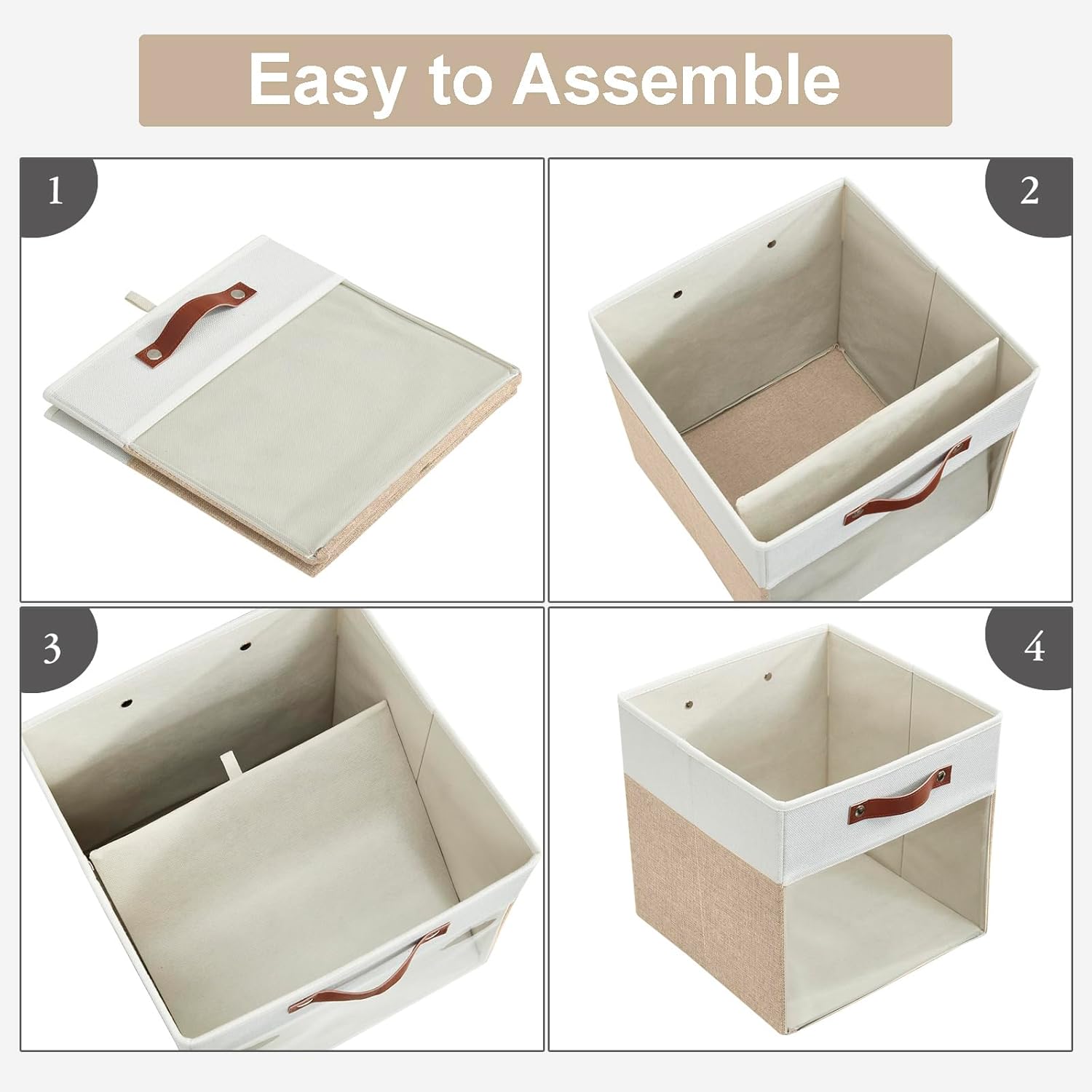 - [Exquisite Details] The handles of the storage cubes are made of soft leather, durable and classical. 2.5mm high quality cardboard on the sides and bottom help the storage bins keep firm and unbending. The heavy cardboard on the bottom is sewn together with the bottom fabric so you will not lose or forget it when you fold up the cubes.