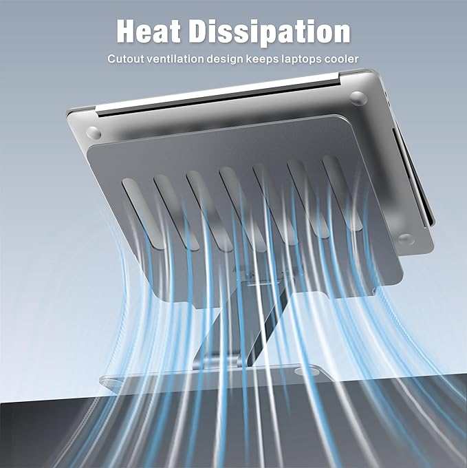 - 【Durability and Reliability】Crafted from high-quality aluminum alloy, this laptop holder stand boasts a sturdy and durable construction. It features a mechanically sound design, once it’s set up(no need any tool), it remains stable without slipping or dropping over time. This aluminum laptop stand is designed to accommodate various laptop sizes ranging from 7 to 15.6 inches and can support up to 18 pounds