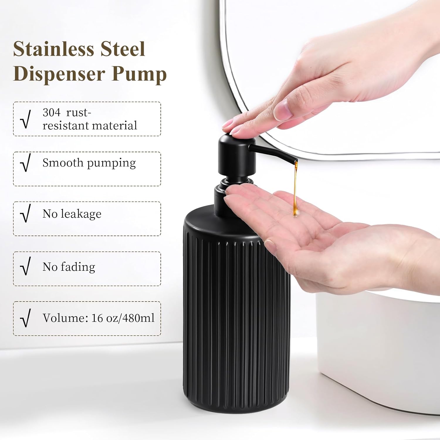 - Selected Superior Materials: The soap dispenser, foam dispenser, toothbrush holder, and Q-Tip holder are made of high-quality glass, free from unpleasant odors. The stainless steel pump is crafted from premium 304 rust-resistant material, not easy to fade. The ceramic tray is sturdy for lasting use and can stay dry even in humid environments.