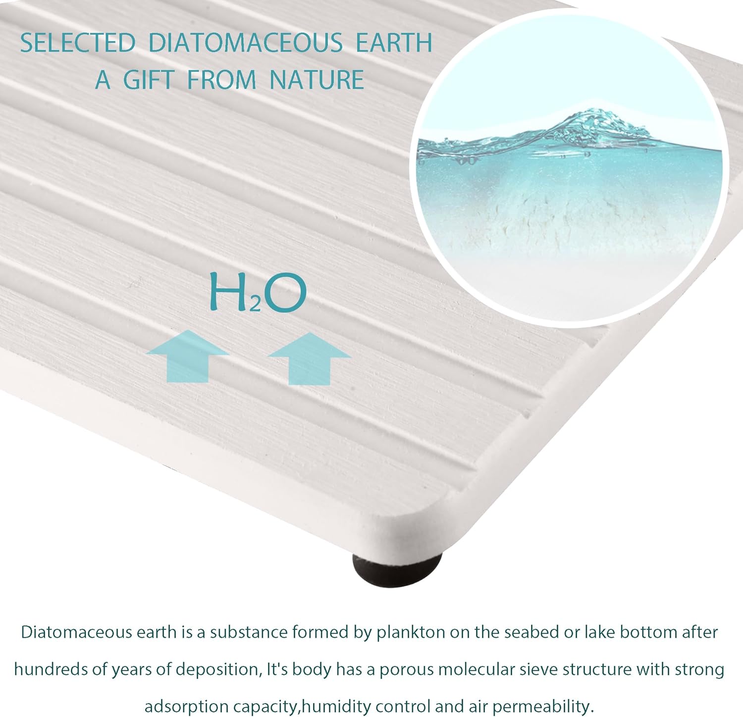 - Made from natural and environmentally friendly Diatom mud and plant fiber. Small holes within diatomite enable it have amazing water absorption. They can quickly absorb moisture and dry out in a few minutes. It makes the Bathroom Counter top more dry and tidy.