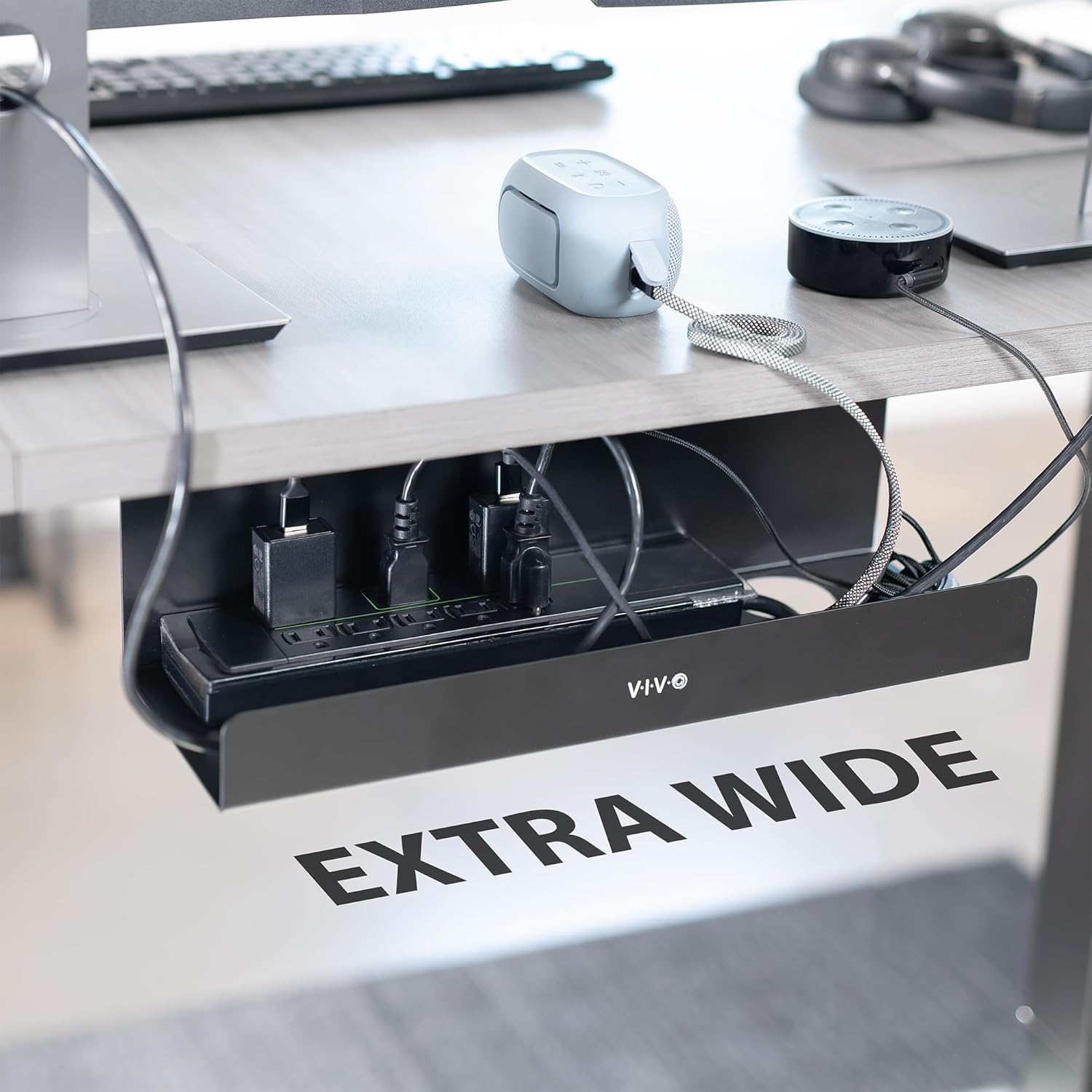 VIVO Under Desk 17 inch Extra Deep Cable Management Tray, Power Strip Holder, Cord Organizer, Wire Tamer for Office and Home, Black, DESK-AC16-1C
